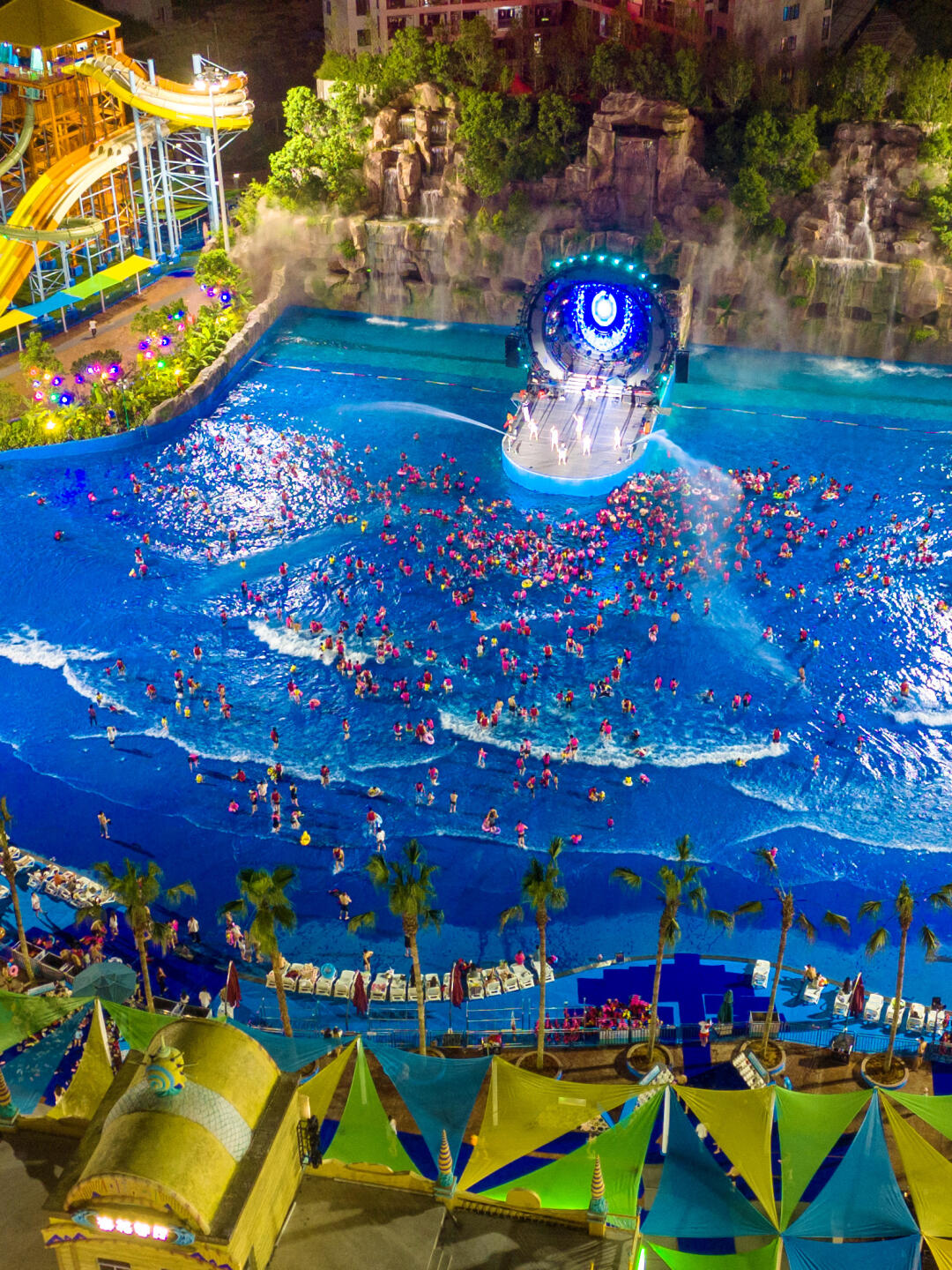 夜场灯光秀:水世界造浪池超嗨dj真的玩到嗨