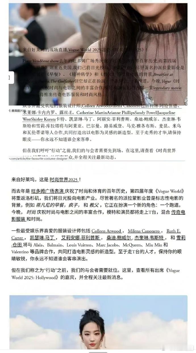 Vogue World 认领刘亦菲,待遇超顶[努力],排面拉满~并与一众大咖合影[哇]