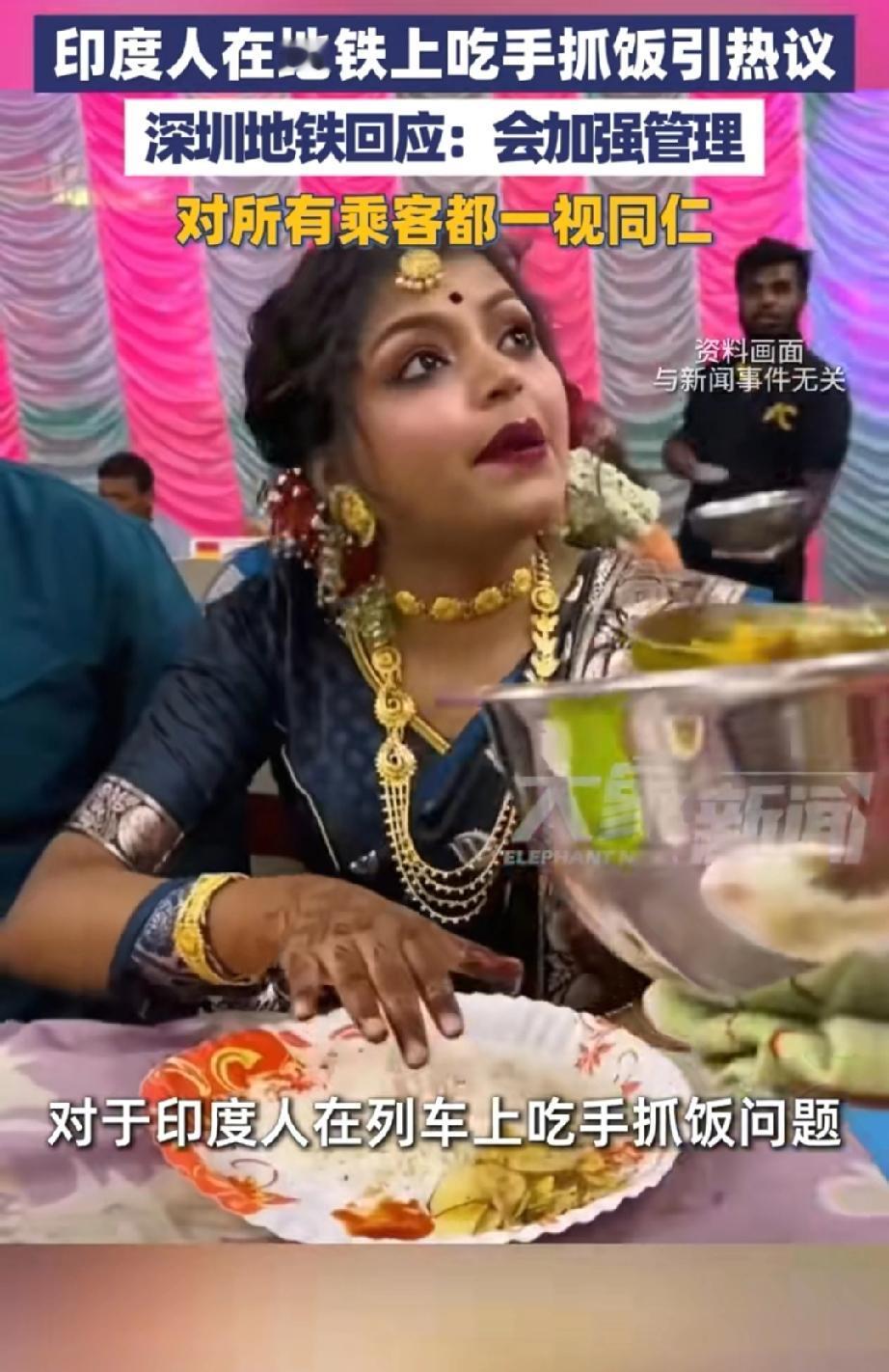 一对印度母女在深圳地铁上吃手抓饭,吃的是中餐炒面条和炸鸡腿,此事引发网友热议。 深圳地铁回应称,对所有乘客一视同仁,地铁上禁止吃东西,婴儿除外。当时地铁巡视员未发现,所以未进行阻止。 有网友质疑地铁特殊“关怀”外国人。 我相信地铁方的回应,毕竟如今外国人在中国骑电动车不戴头盔,这是违章,被抓到也会处罚。 当然,在地铁上吃手抓饭也违反了地铁规定,会被劝导或是罚款。 就如同中国人在国外不遵守当地规定,同样会受处罚。 所以,出国游玩前,建议提前做好功课,了解当地风俗禁忌,明确吃住行相关规定,如此既能避免尴尬场景的出现与违规行为,让旅程更舒心,也能展现一个国家人民的良好素质。 来源:大象新闻
