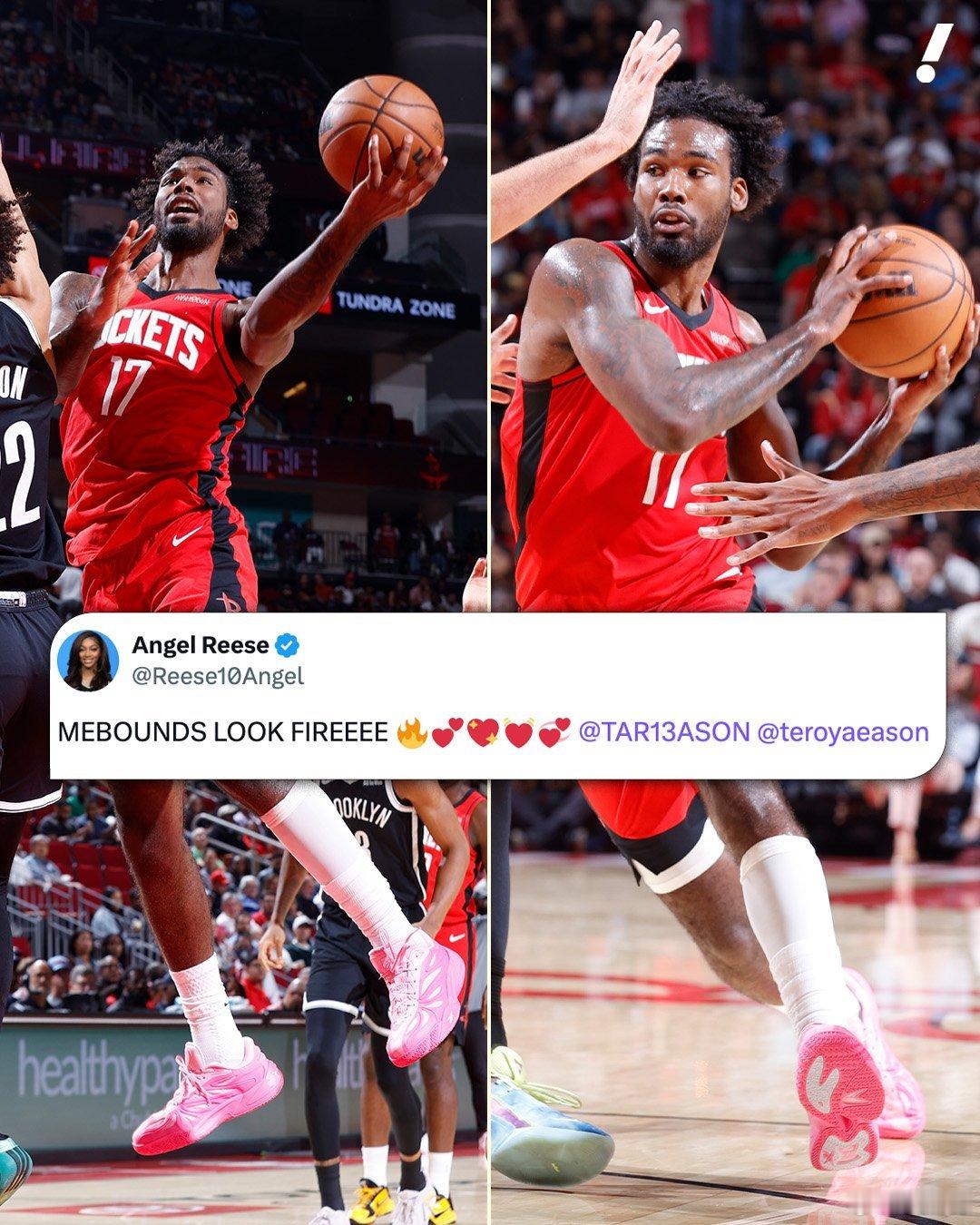 今天火箭137-109轻取篮网的比赛中,塔里·伊森完成了 安吉尔里斯 1的 "Mebounds"配色战靴首秀,全场砍下22分5篮板5助攻并命中5记三分球。