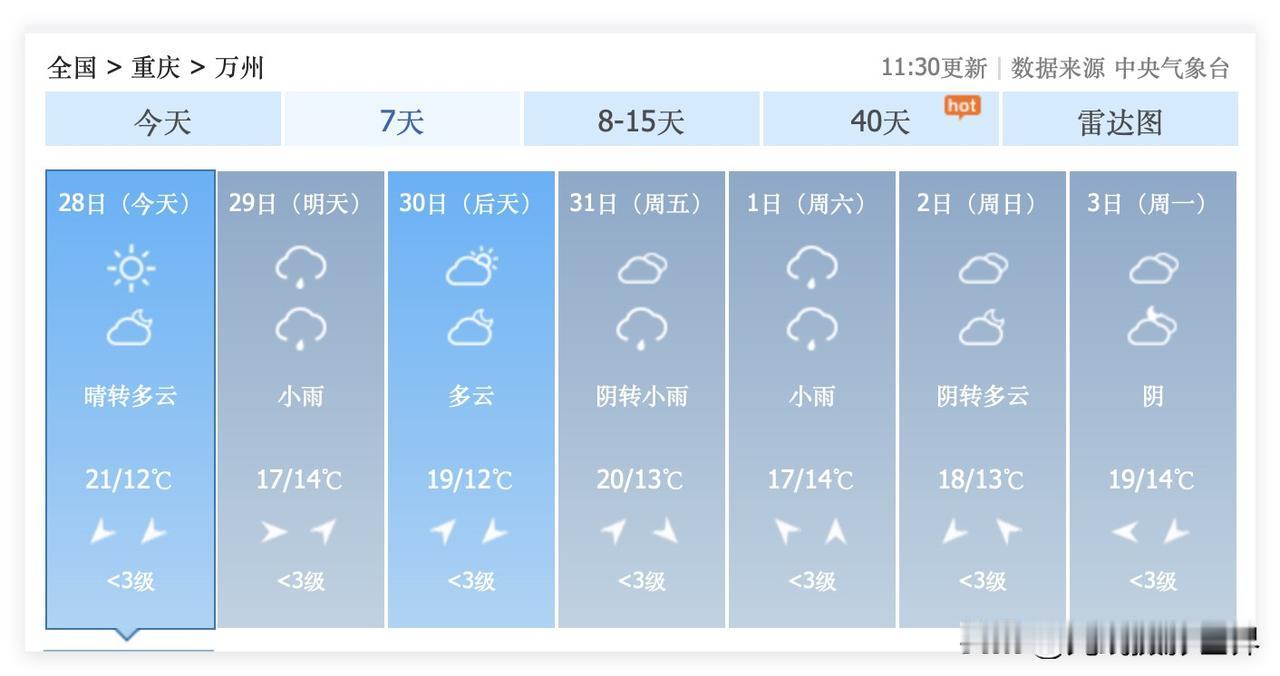 不错不错,10月29日,重庆万州和开州,小雨,巫山云雨,烟雨三峡库区,开州汉丰湖,云雾缭绕,美如画啊! 10月30日,星期四,万州和开州,多云晴好……太棒了! 就是晚上和清晨,可能有点凉快,最低气温12度13度,恐怕还是要穿秋裤吧?! 嗯,明天去万州和万州,真的好期待啊!