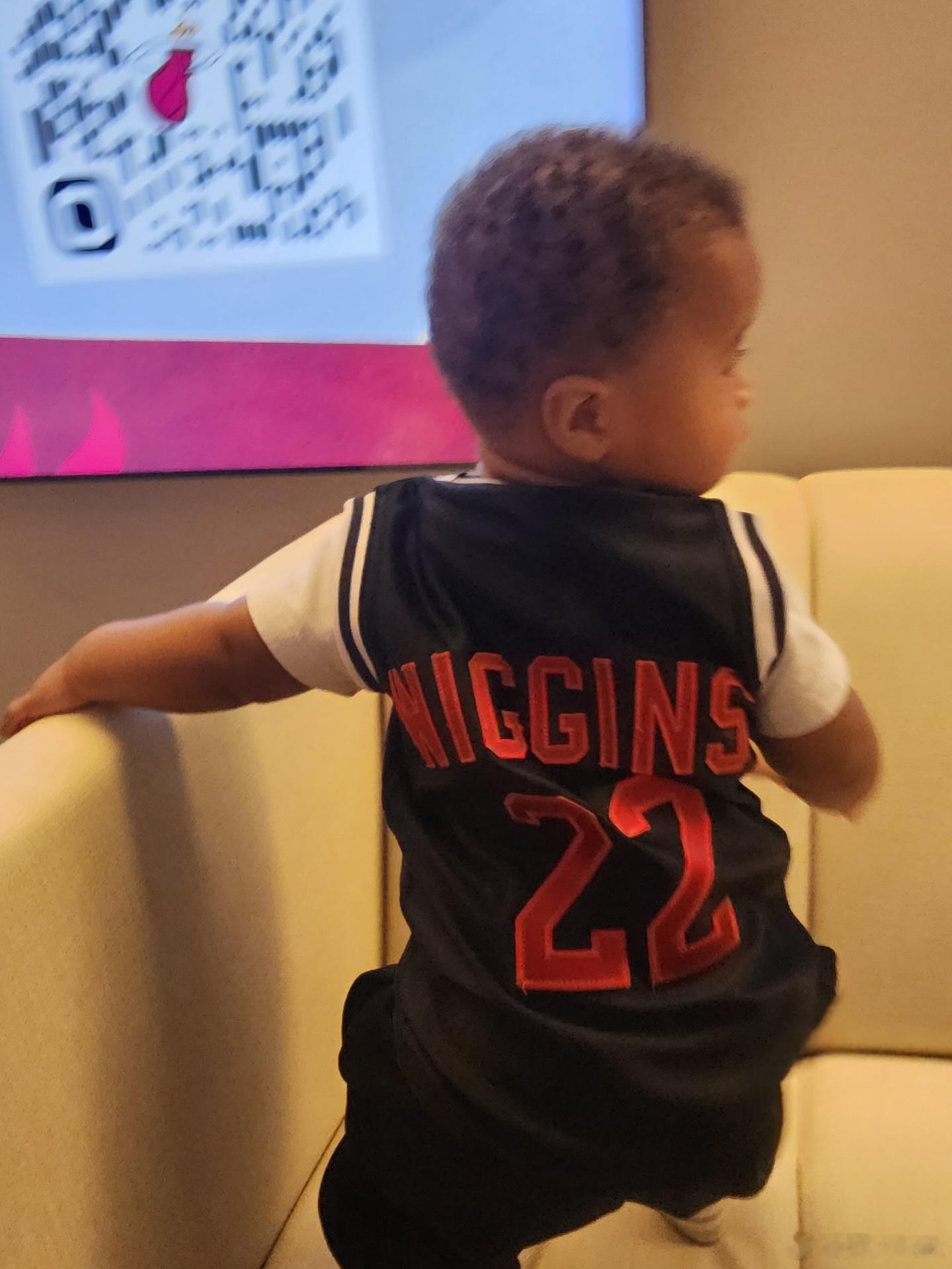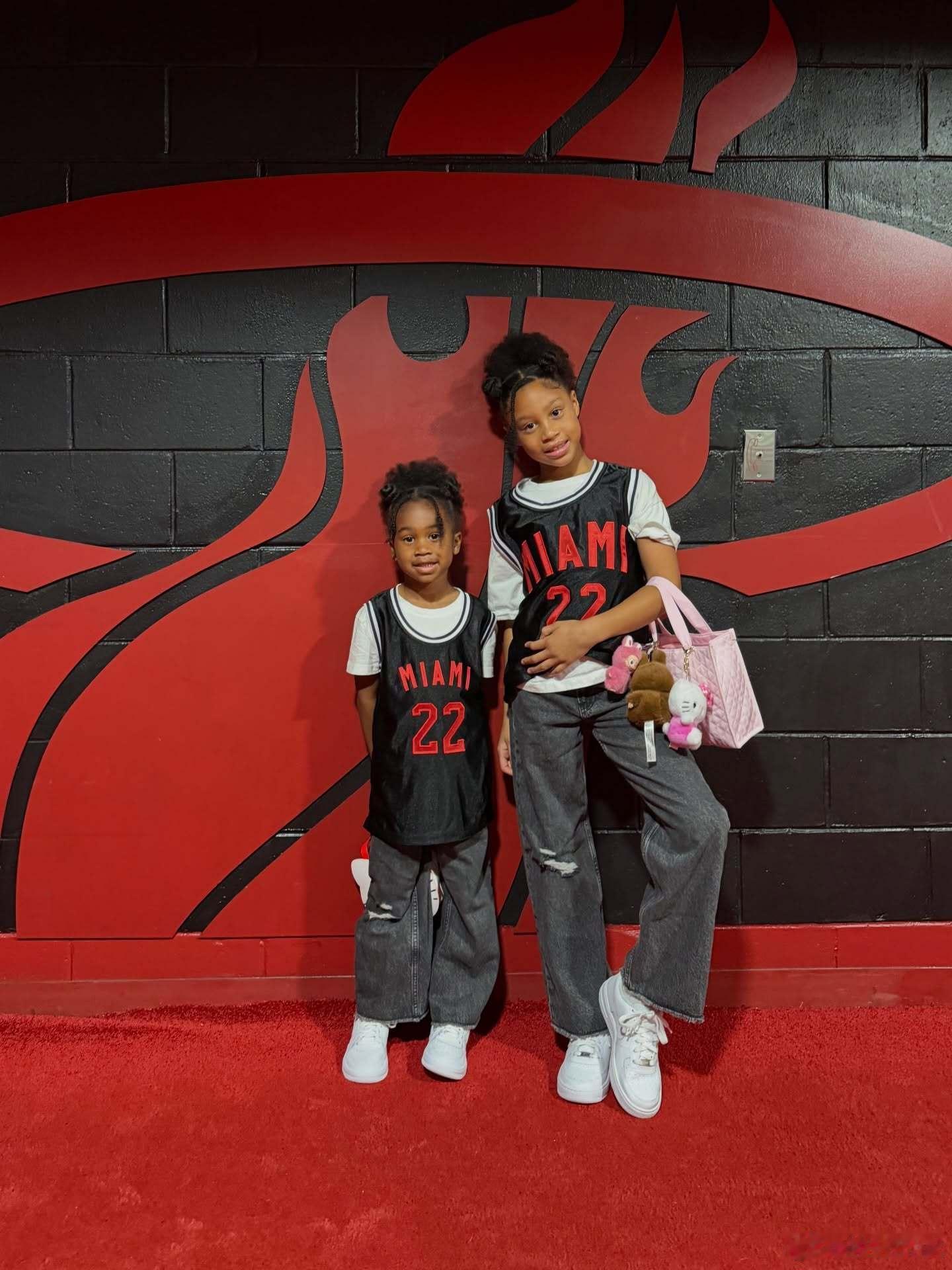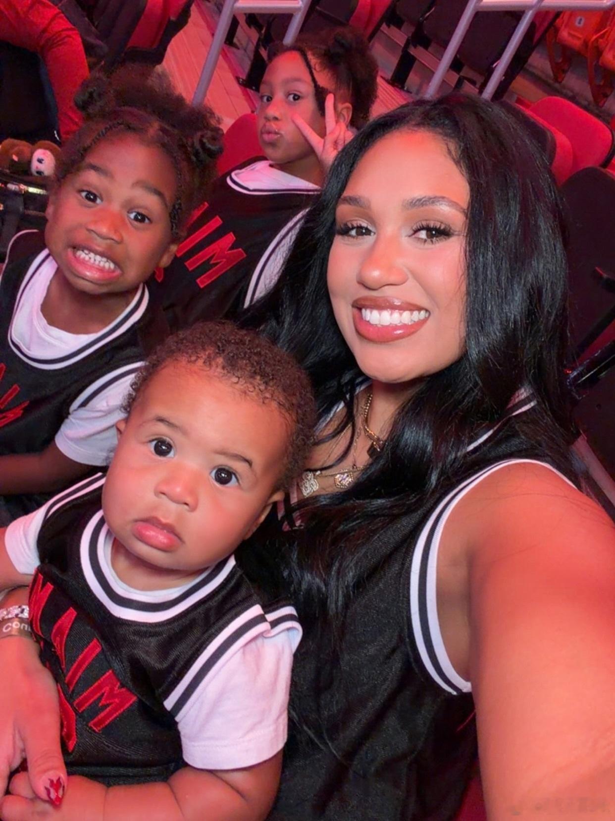 嘴嫂身穿22号热火球衣,带着三个孩子在热火主场看球新赛季篮不住nba