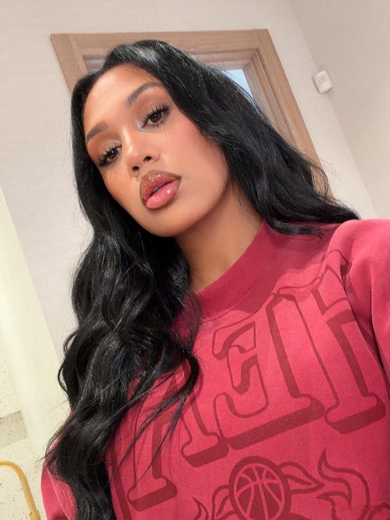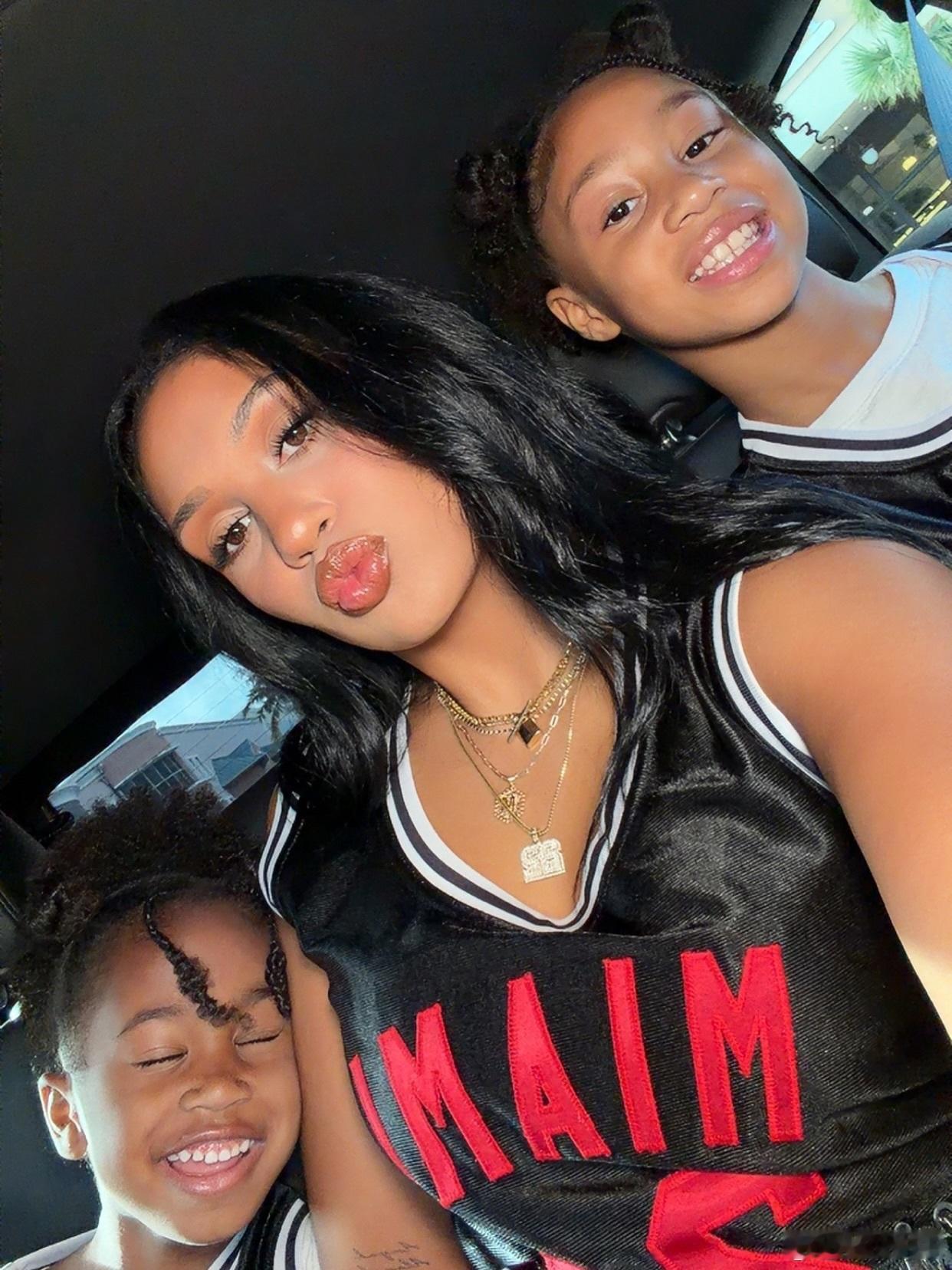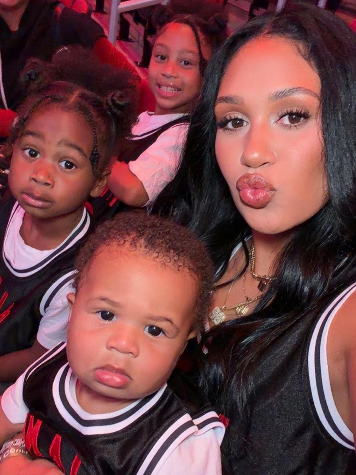 嘴嫂身穿22号热火球衣,带着三个孩子在热火主场看球新赛季篮不住nba