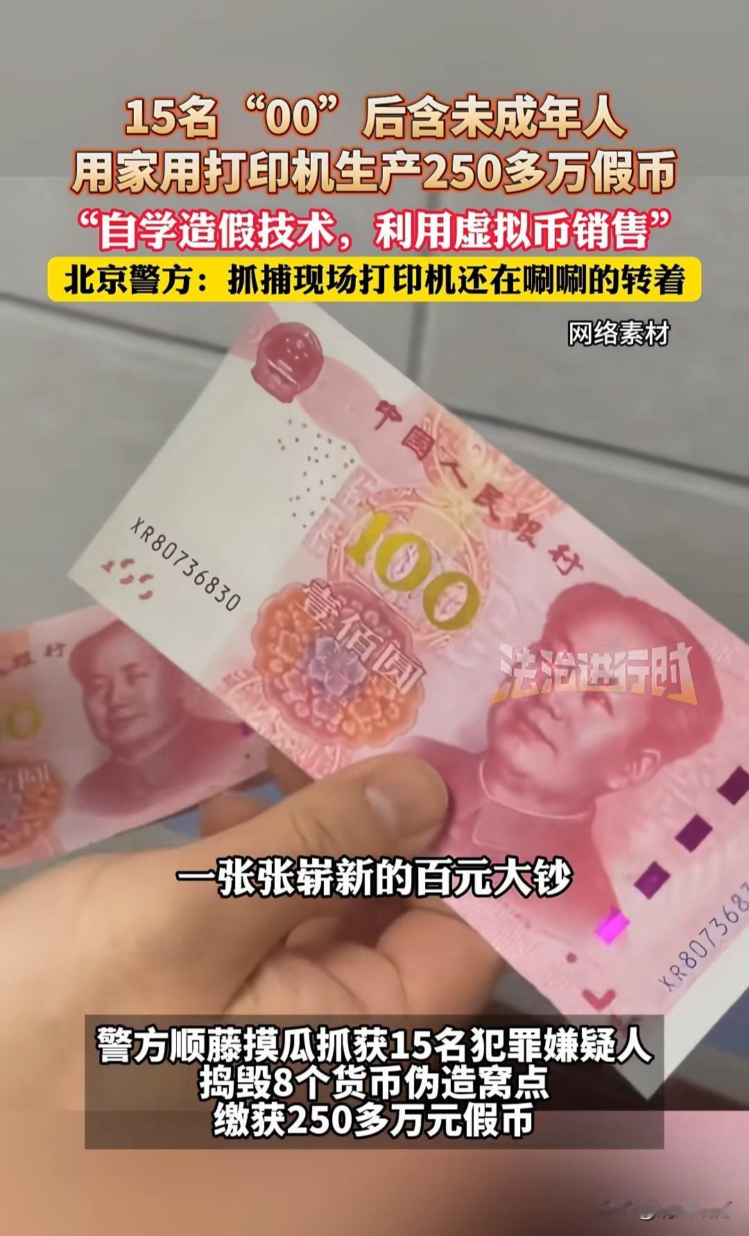 太不可思议了,15名“00”后含未成年人自学成才造假币,利用造假技术,狂印250万假币。 不但自己造假币,还把自己学来的造假技术卖了出去,真是人才呀!可没想到还是被帽子叔叔全抓了。 这件事说明一个问题,中国不缺人才,缺的是一双发现人才的眼睛,更不要说学习不好的孩子笨,那是他们对学习内容不感兴趣。 此事件也被网友们吐槽,都是被学校刷下来的高智商人才,只是没把智商用在正道上。