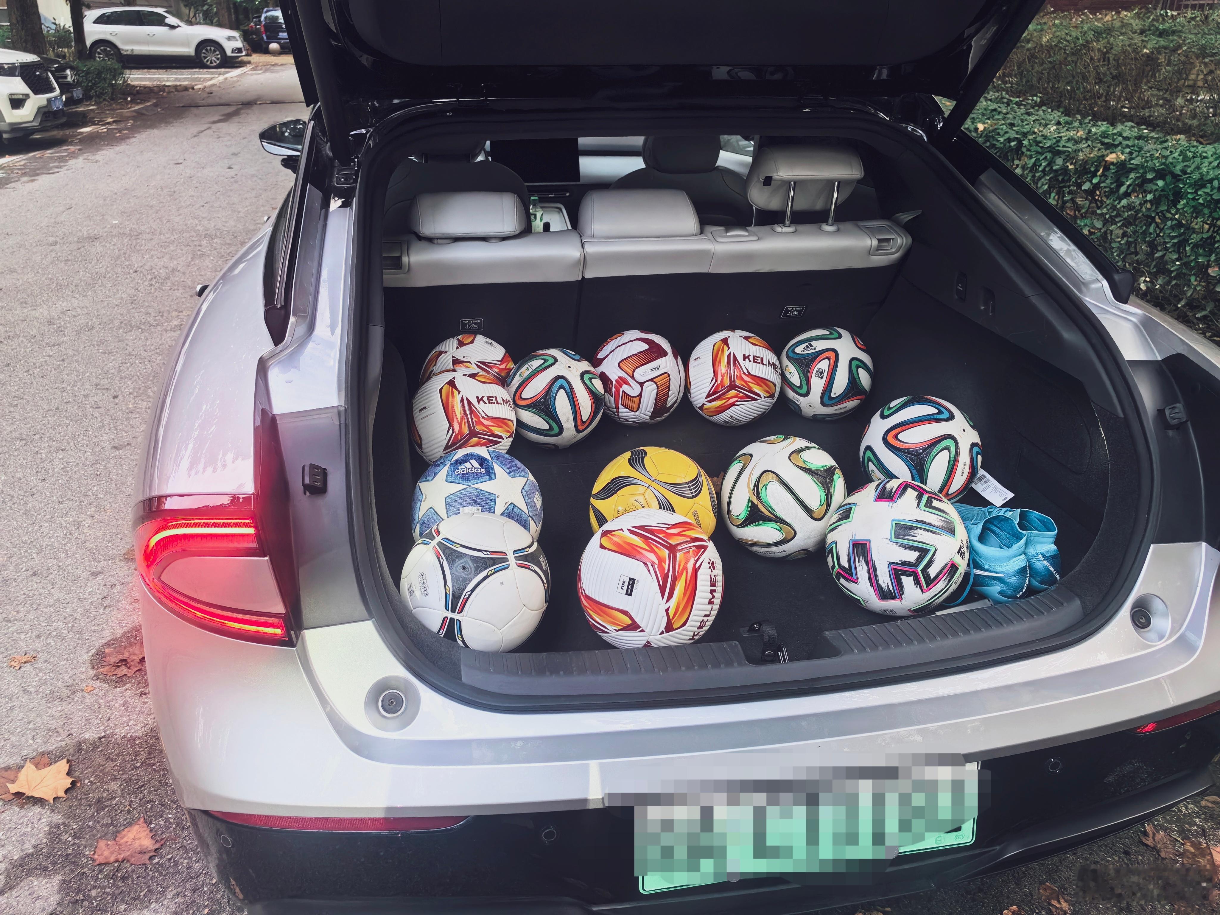 小鹏P7+这巨大的后备箱太适合我了,带着一堆足球去练习中场吊射,猜我10脚能进几个?