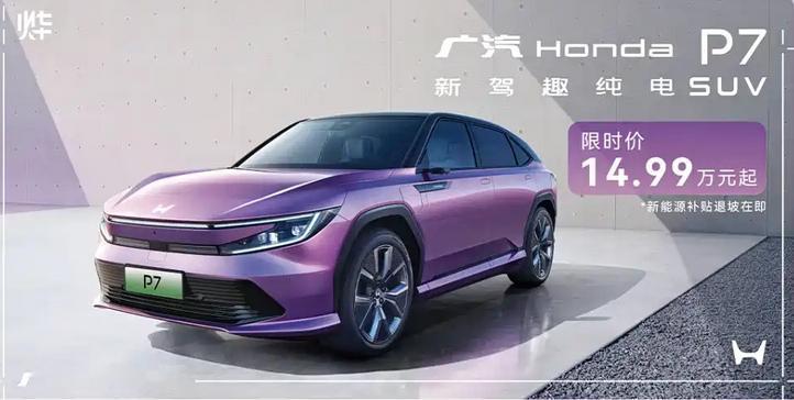 日前,汽节车社从广汽本田官方获悉,广汽本田P7推出限时优惠价14.99-19.99万元,新车官方指导价为19.99-24.99万元。 广汽本田P7定位为一款中型纯电SUV,长宽高分别为4750/1930/1625mm,轴距为2930mm。 内饰配置方面,配备9.9英寸仪表屏+41.9英寸HUD抬头显示+12.8英寸中控屏+10.25英寸中央控制屏。 驾辅方面,采用Honda SENSING 360+高阶智驾系统,配备1个前视摄像头、4个多向摄像头、5个毫米波雷达和12个超声波雷达。 动力方面,广汽本田P7提供单电机后驱和双电机四驱两套动力系统,单电机版最大功率为200kW,CLTC工况续航里程为650km; 双电机综合功率350kW,CLTC工况续航里程为620km。30%-80%充电时间36分钟。 点个关注吧!汽节车社,车圈热点资讯每日一扫清!【来自懂车帝车友圈】