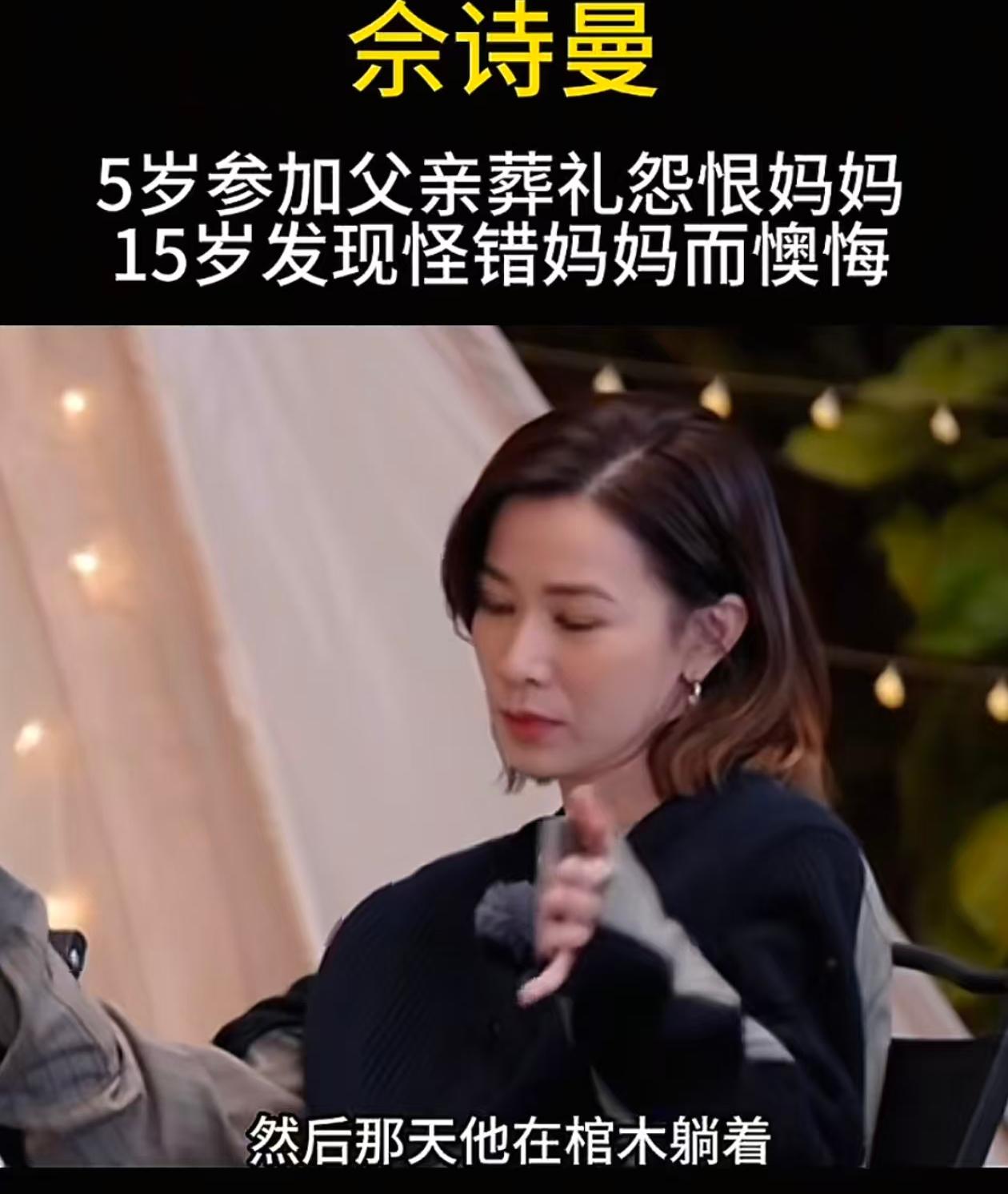 佘诗曼父亲去世时,家人竟然不让她看最后一面,因为这件事,她一直和家人置气。 父亲的棺材摆在那,佘诗曼想去看,但是棺材太高,当时她只有5岁,根本看不到里面情况,她想让母亲把她抱起来,妈妈不理他,转头去求助亲戚,没有一个亲人把她抱起来,这个事她一直耿耿于怀。 直到15.6岁家人才告诉她真相。 因为父亲是出车祸去世的,头被撞伤了,家人觉得佘诗曼太小了,担心她看了会有心里阴影。 所以为什么佘诗曼听到许绍雄的情况绷不住了,佘诗曼回忆,她从小就缺父爱,两人在剧组那气场就像真正的父女,佘诗曼说起认干爹两人一拍即合。 许绍雄说过,佘诗曼是她唯一干女儿,两人私下还举办过仪式,作为干爹还给过佘诗曼礼物。 对佘诗曼来说,她相当于经历了两次父亲的离去,肯定痛彻心扉。