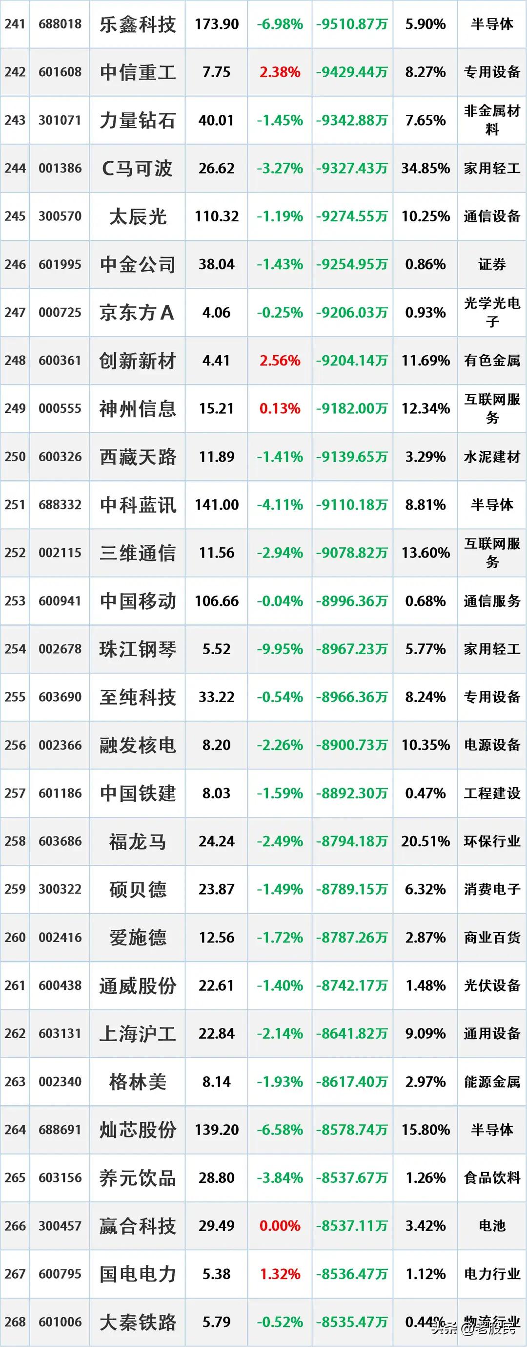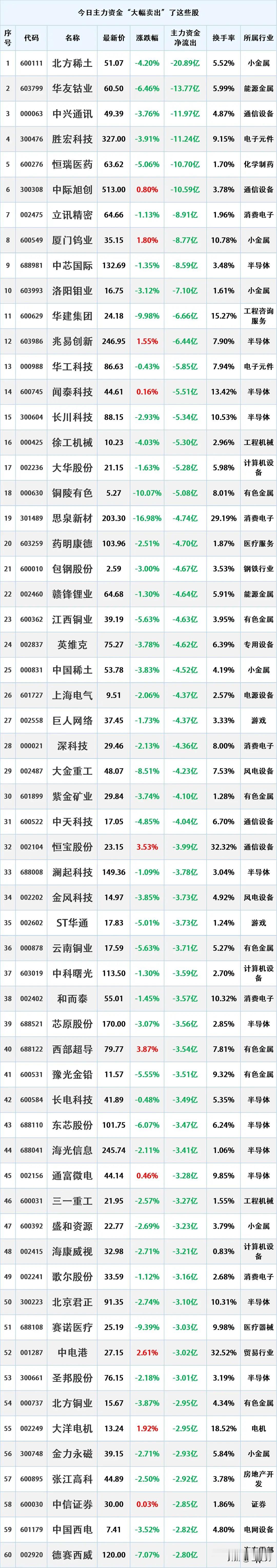尾盘资金出逃,10月28日主力资金大幅流出的股票名单。 资金流出是指在一定时期内(如一天、一周等),主动卖出某只股票的资金量大于主动买入该股票的资金量。主动卖出是指投资者以买方的报价直接成交,显示出投资者对该股票的消极持有或抛售意愿。