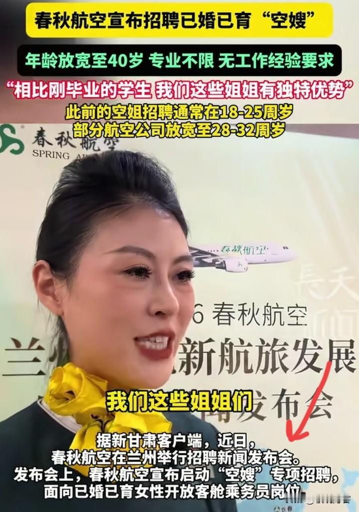 挺好的啊, 春秋航空招“空嫂”,已婚已育的。多给这个年龄段的女性求职机会,让有了家庭的女性也可以拥有事业。 以前兼顾家庭的女性会面临很多求职困境,如果能够普及就真的是社会的进步吧,多给她们一些包容,她们可以是母亲,也可以是工作场上的精英。