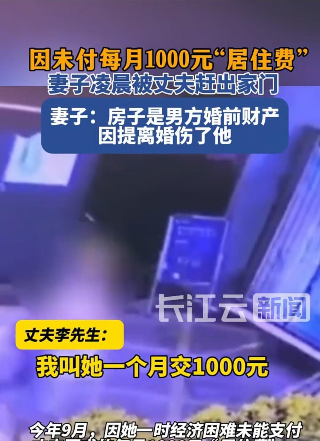 福建福州,女子居住在丈夫婚前的房子中,丈夫让她每月交1000元居住费。9月份时,