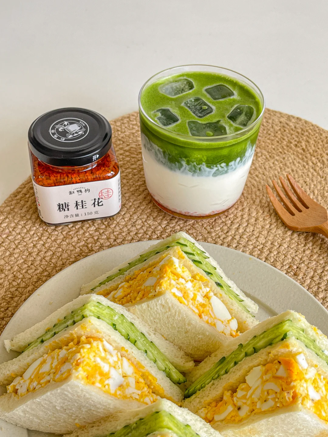 一口三明治一口桂花抹茶拿铁 幸福感直接拉满 秋天的快乐 被糖桂花拿捏得死死的~🍂