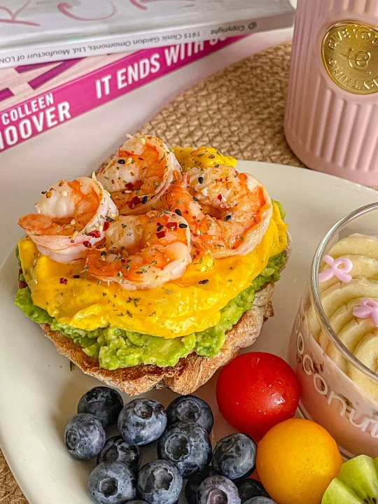 漂亮饭🫐蓝莓三明治滑蛋虾仁烤肠🍤冰柠檬茶