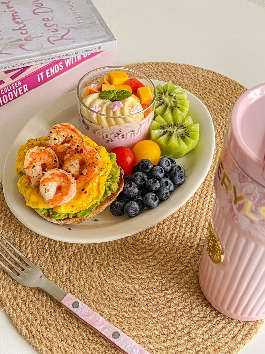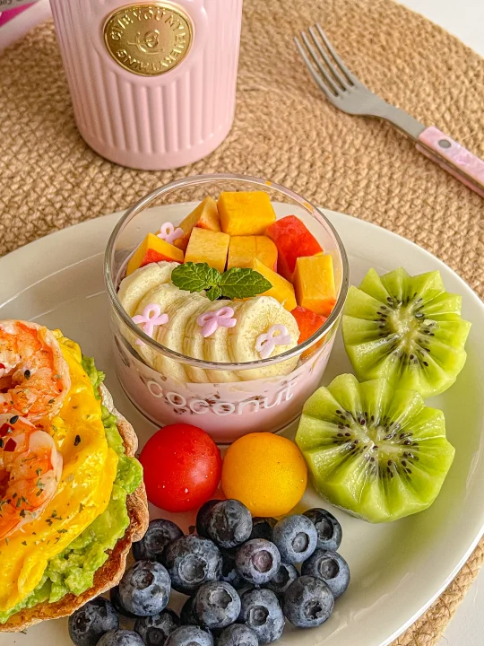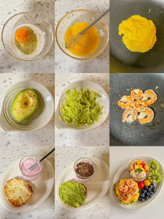 一个人吃漂亮饭!仪式感满满💕 三明治搭配酸奶杯和冰美式 清爽解腻🍃 🍤今日食材: 恰巴塔➕牛油果➕滑蛋➕虾仁➕蓝莓➕奇异果➕圣女果➕酸奶➕莓果粉➕烘焙燕麦片➕香蕉➕黄桃 最近做饭 干净又简单 今天的早午餐主打一个高颜值且食材丰富美味!