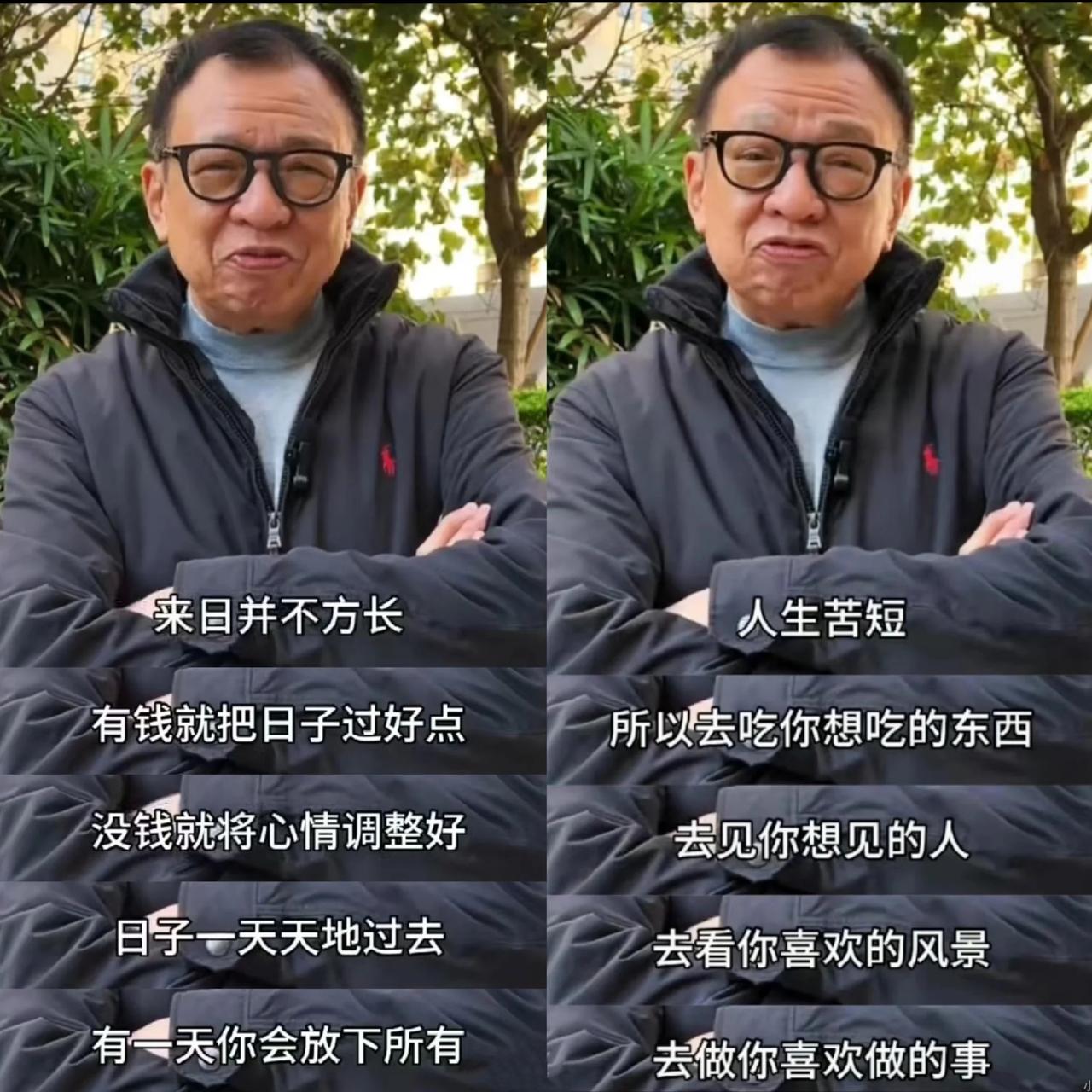 TVB老戏骨许绍雄,曾说过: 人生苦短,来日并不方长。 这话听着普通,却比任何大道理都实在。多少人总想着“等有钱了再享受”“等有空了再见面”,结果钱没攒够多少,想见的人却没了机会,想吃的馆子也关了门,最后只剩满肚子遗憾。 他说有钱就过好点,没钱就调好心态,这话太清醒了。现在太多人把日子过拧巴了,没钱时愁眉苦脸,有钱了又怕这怕那,连顿好饭都舍不得吃,连趟短途旅行都要纠结半天。其实日子哪有那么多“以后”?想吃的火锅现在就约,想见的朋友现在就聊,别等“改天”,改天说不定就成了“再也不见”。 最戳我的是他说“除了健康什么都不是你的”,生气10分钟等于熬夜5小时,这话真该贴在每个人手机上。多少人跟烂人计较、为小事钻牛角尖,气出胃病、熬出黑眼圈,最后赢了口舌之争,却输了健康,这才是最亏本的买卖。要知道,百年之后大家都是尘归尘、土归土,带不走一砖一瓦,现在纠结的那些破事,回头看根本不值一提。