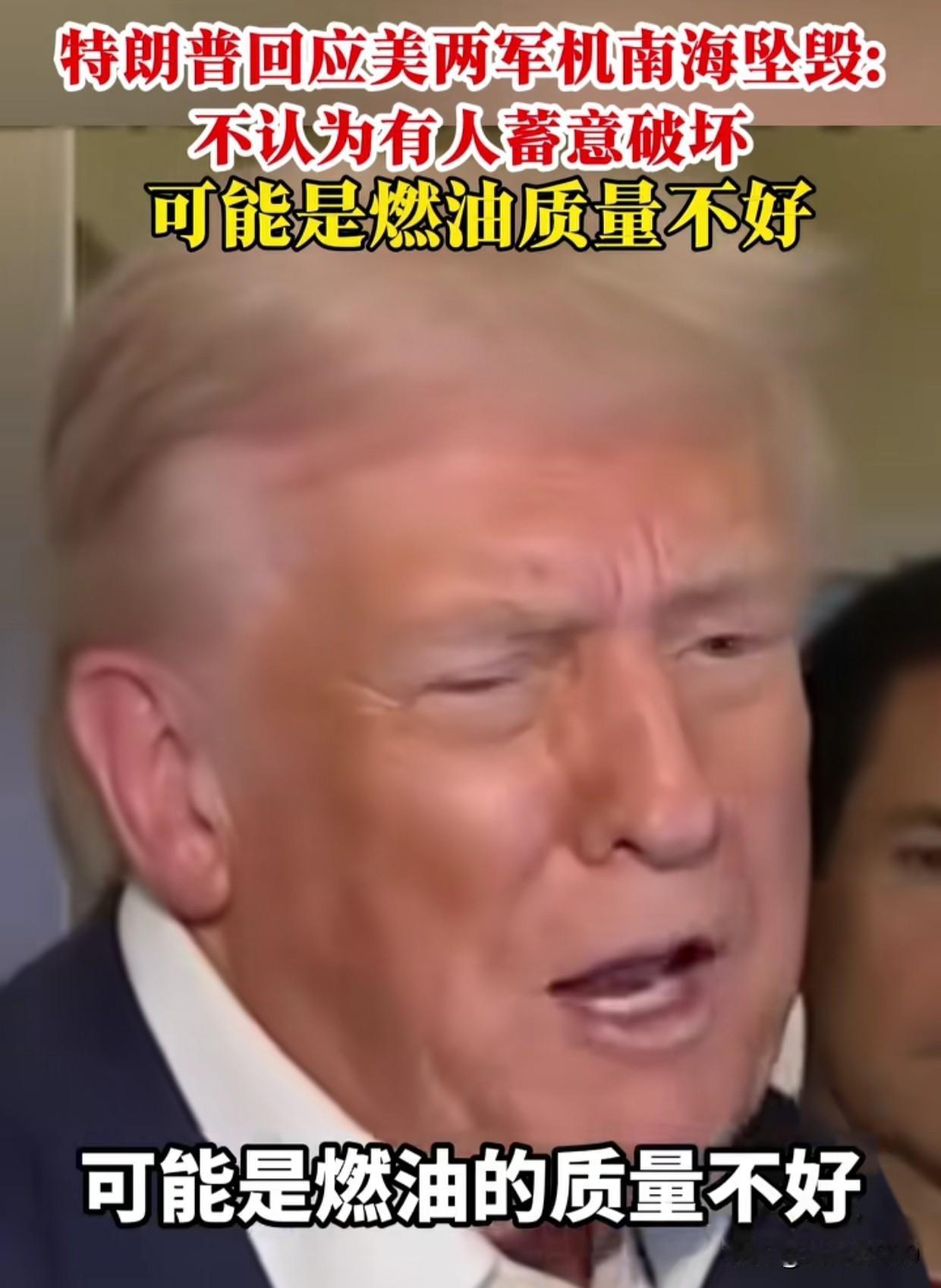 川普吃黄连,再苦也说甜!我们刚发明了所谓的“劣质电”导致的电车自燃,没两天就被川普学了去,顺势发明了“劣质油”,合理的解释了美军两架飞机出现的原因! 只有自己强大了,即使对手是挨了打,对手也会解释是自己的原因!