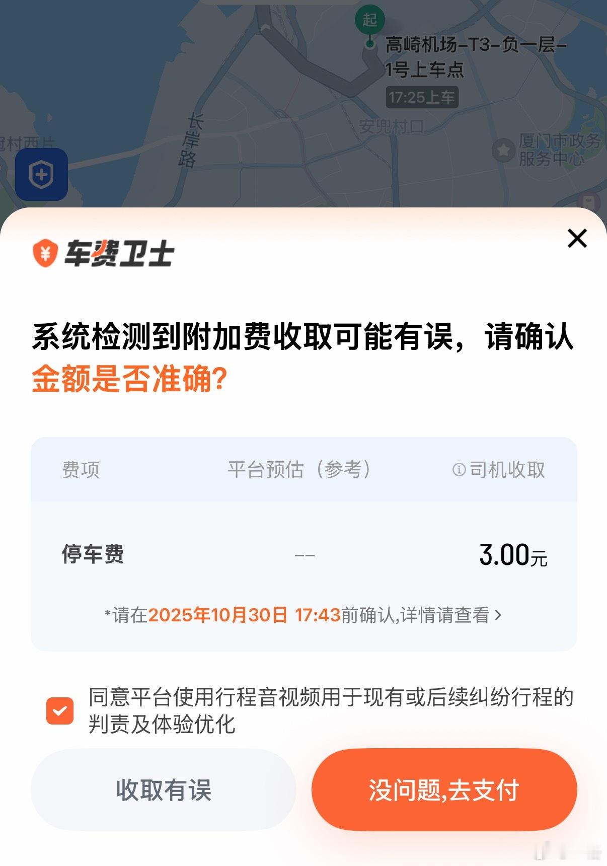 黑人问号,刚才打的车,车子从机场外进来后我直接上车就走了,全程 2 分钟不到,居然还默默给我加了 3 块钱停车费,当然是选择拒绝[流汗]