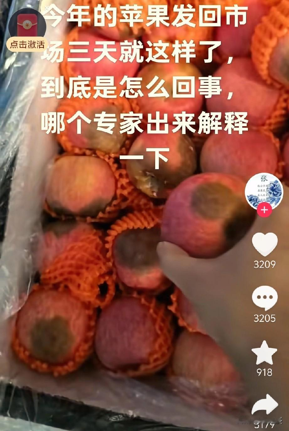 这是苹果被热捂了! 苹果从树上摘下来就像婴儿刚脱离母体,需要慢慢适应新的环境,你要是马上给他(她)裹得严严实实的,孩子会不断哭闹!松开他们的手脚,反而会安静下来。 苹果刚下树是带着温度的,你用发泡网包起来,又直接装进箱子发快递走几百上千公里,苹果自身携带的热量散发不出去,不坏不烂才怪呢!有经验的经销商都是把刚摘下来的苹果放进冷库储存7天左右,再出库包装发货。[捂脸]