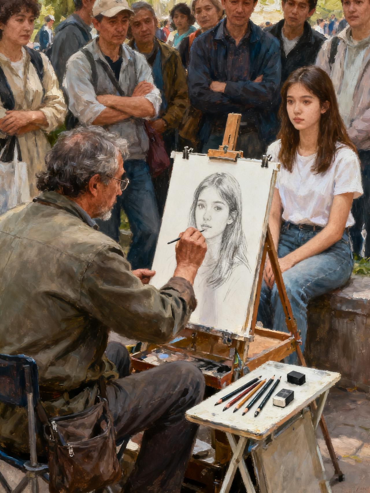 惊艳!00后美术生摆摊日入过千,太牛啦! 宝子们,最近有个超火的事儿,00后美术生毕业摆摊居然能日入过千,是不是很厉害? 在武汉“书香长江”阅读周书展现场,00后美术生唠唠的“二次元国风手绘”摊位前围满了人。她手持毛笔,在宣纸上画出的画那叫一个绝,把一家三口的笑颜画得比照片还灵气。 唠唠4岁就开始学画,本科是湖北大学美术专业,现在考研到湖北美术学院国画专业。她把水墨的写意和二次元的夸张造型融合在一起,每幅作品10 - 25分钟,价格68 - 198元。国庆七天,她每天画十幅双人画像,收入超七千。 唠唠能成功,是因为她对市场很敏锐。她知道街边画像摊都差不多,就努力找不一样的地方。本科时她就把国画和流行文化结合,考研后又研究动漫角色设计。她的作品风格多样,什么传统汉服少女、赛博朋克机械观音都有,在毕业展还拿了好多奖。 有人觉得美术生摆摊是“艺术平民化”,让艺术更贴近普通人。也有人担心这样会让艺术变得太商业化,失去原本的价值。 大家怎么看00后美术生毕业摆摊日入过千这件事呢?觉得是艺术的新出路,还是浪费才华?快来评论区说说吧。