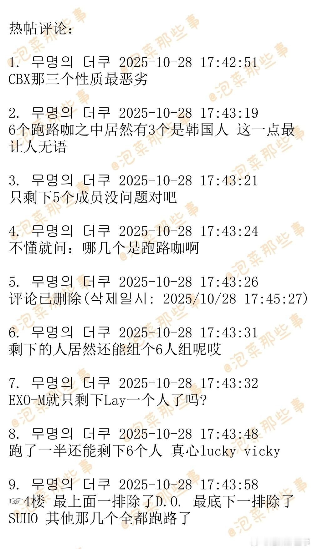 🔥韩网热帖评论翻译🔥12名成员一半都是跑路咖的legend组合EXO六名成员
