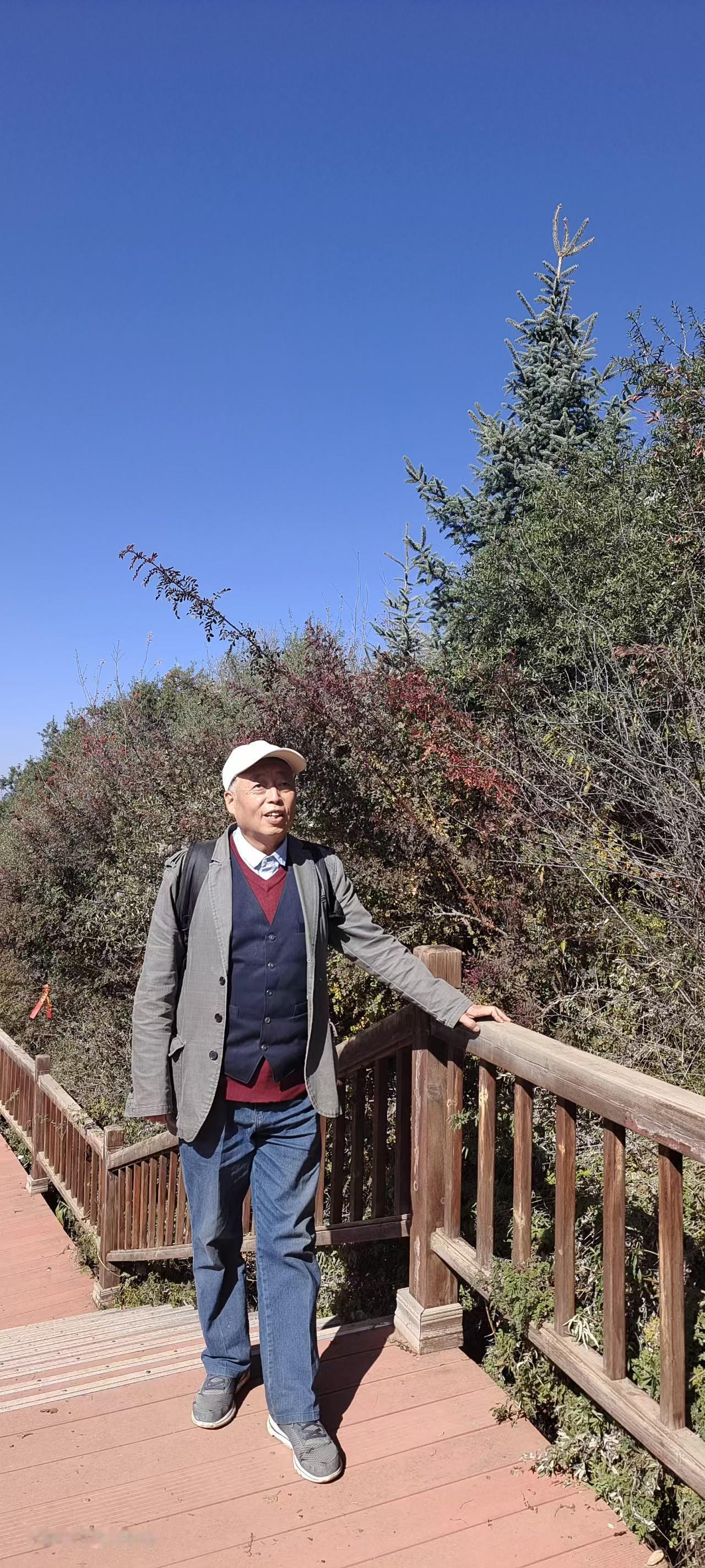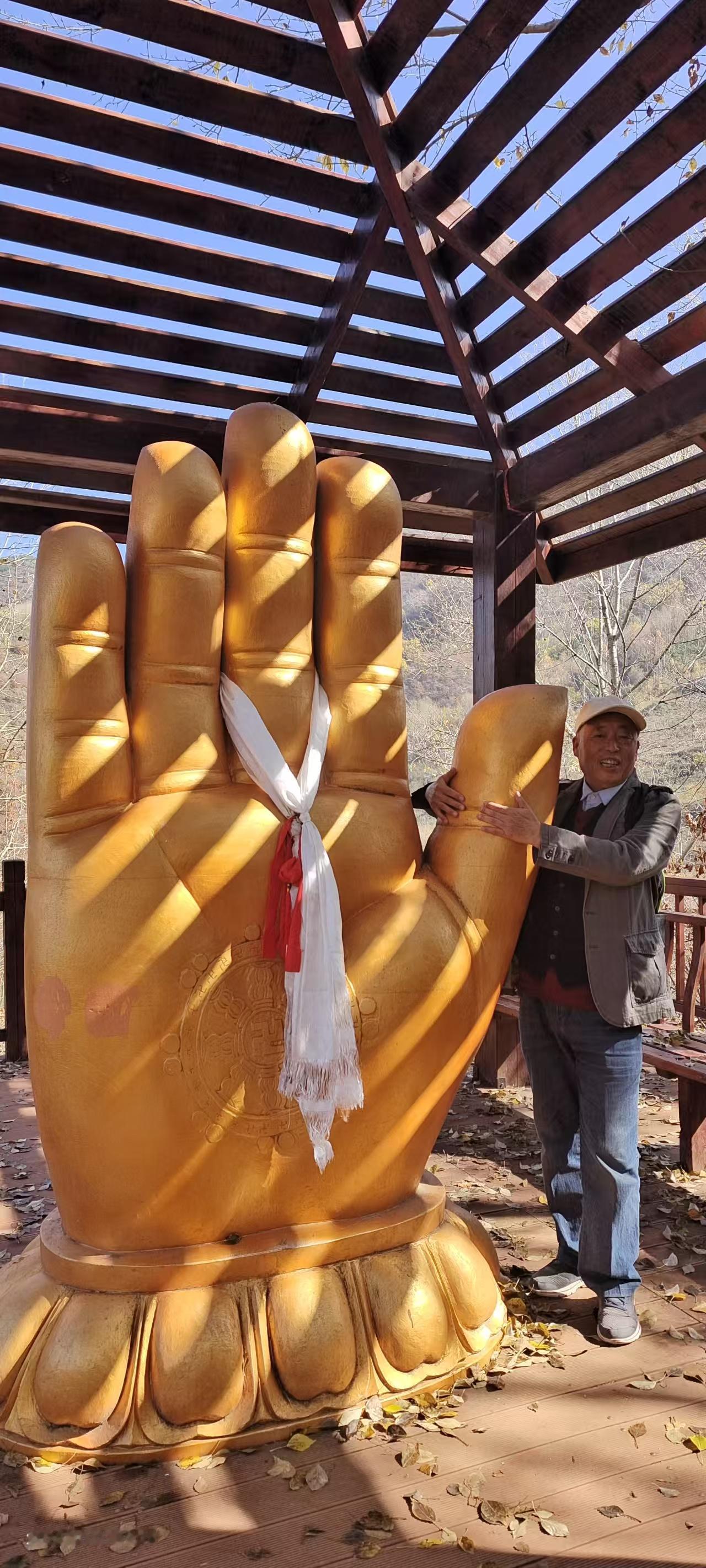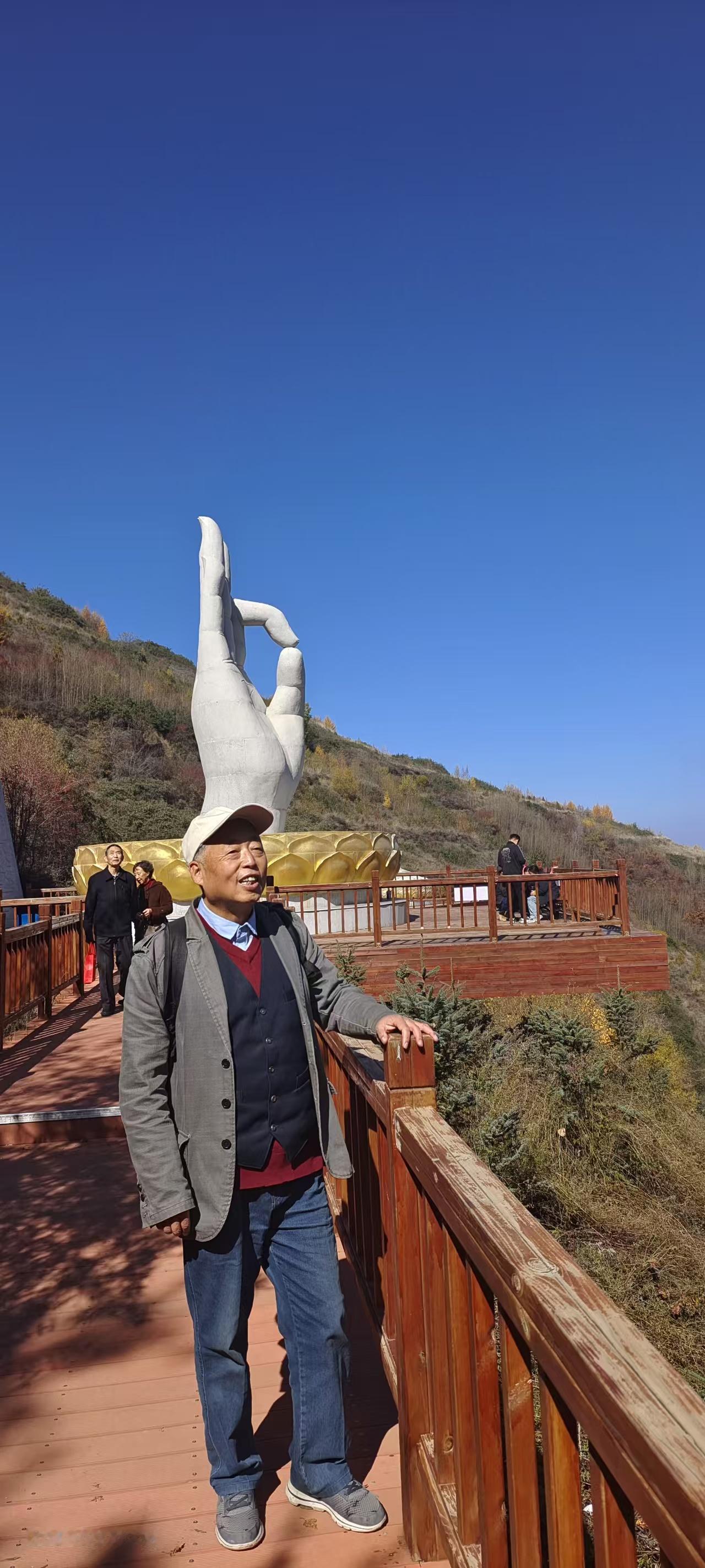 秋日暖阳映景区 云顶山上秋色浓 记者王志俭(穿石)文图 前些天兰州阴雨连绵,天气有些阴冷只好猫在家中。这几日天气晴朗正是欣赏秋景的好时光,于是27日上午我披着秋日暖阳,踏上了游览云顶山景区的旅途。 1:慕名游览云顶山秋景 说来有些孤陋寡闻,几十年间我竟没去过云顶山。前些年云顶山鲁冰花盛开,曾让云顶山红火过一阵。那次就想去云顶山一游可惜没有去成,一晃几年又过去了。而这几年云顶山的名气越来越大,尤以秋色美丽享誉旅游业,并逐渐成为徒步旅游者青睐的景区。在此情形下如再不去云顶山,恐怕我这个兰州人就图有虚名了。 早晨9时许太阳公公已经上岗,将金色的阳光洒满城市角落。我从文化宫乘坐44路公交车,由于是第一次去云顶山路线不熟,询问公交车司机时他热情说,您只管安心乘车,到时我会提醒您下车换乘面包车。兰阿公路早已不是多年前的狭窄公路,公交车多半时间行驶在新修的宽阔公路上。我一边欣赏新修公路两侧的风光,一边回想着记忆中的兰阿公路旧貌恍如梦中,不由从内心感叹兰州城市建设真是飞跃发展。 “到了,在这里下车可乘面包车去云顶山。”就在我还遐想时耳边传来公交司机师傅的提醒声。刚到一个红灯十字,就听到面包车司机招呼:“每人10元钱,一直拉到云顶山步行道下。”没有耽误一分钟,我便和其他5个散客一同乘坐面包车驶向云顶山。 云顶山秋色醉煞人 面包车师傅很健谈,一路上不停的介绍云顶山的景点和浓郁的秋色,约半小时面包车行驶到云顶山下。 放眼四望群山郁郁葱葱,红色、黄色,褐色点缀绿色树木之中,彼时云顶上就像画家手中的调色盘,五彩斑斓绚丽多彩、美不胜收。虽然当天不是周末可一路上游人不断,有朝气蓬勃的年轻人,也有中老年人游客。甚至还能听到东北、山东、河南等地口音,从中可窥到云顶山火爆的一斑。 步行道走到一半,眼前出现木制梯形道一直通到山顶。路途比较远但每隔一段路,木制步道就有一个小方台,配备可供游客休息的木凳,只可惜前一天山上下过雨雪,凳子湿漉漉的无法入坐。 游人只好站在方台上小息,喝水、吃零食补充能量。在半山一个方台围栏边,有块黑布遮住下面上写别掀两个字。而这两个字却勾起了游客的好奇心,几乎每个到这里的游客都要掀开黑布一探究竟。“你真犟”看到“谜底”后游客们无不欢心大笑,笑声中冲淡了人们爬山时的枯燥和劳累。 木制踏板上湿漉漉的,有些踏板上还有一层薄薄的霜,踩在上面还有些湿滑。经过一段爬行脸上出现汗渍,再加上秋日暖阳辐射,身体感到有些发热。就在此时爬到了佛手景点,看到金黄色的佛手我顿时来了精神,站到佛手边拍照留念。除了这个金黄色的佛手,这个景点一面墙上还雕刻着几个高低不同的佛手,吸引着游客们打卡争相拍照。 之后,我又随着游客向上攀登,不一会又来到一个佛脚、佛手景点。这里围聚了不少游客,都纷纷在拍照和录制视频。观赏完佛手、佛脚景点后,许多年轻游客又向山上攀登,上面有玻璃栈道我胆小害怕就再没往上攀登。听说前面山顶有个亭子,是观赏云顶山风景的最佳位置,于是我便向山顶攀登而去。 接近山顶时发现林中有零星雪片,由此判定这里前几天降过雪,而路上搞卫生的工作人员证实了这一点。13时许,正是阳光最强时段,照在身上暖意融融。脚下踏板上的霜也完全融化,踩在上面发出滋滋响声,就连扶手也晒得有些发热,手握扶手一股暖意传向全身。 至此环境让人心情愉悦,尽管山顶步道陡峭,可感觉没费啥力就登到山顶。站在山顶亭子上面,云顶山景色一览无余。只见层峦叠嶂树木花草各展芳姿尽相媲美,让人感觉仿佛走进了仙界,令人陶醉不能自拔。我感觉此时美丽词语已无法形容云顶山的秋色之美。感觉唯有歌声能表达我的心情,可惜我没有唱歌的天赋。忽而我又觉得写诗可以抒发我对云顶山秋景的赞美,但遗憾的是我没有写诗的才华。 于是只能对着云顶山默默说到,既然我不会唱歌和作诗,那就让我写篇拙文抒发我的感情吧。我知道拙文肯定写不出云顶山的雄伟壮丽,但我还是要自不量力的去写,因为文章能让更多人知道兰州云顶山的大名,如此我就心满意足了!