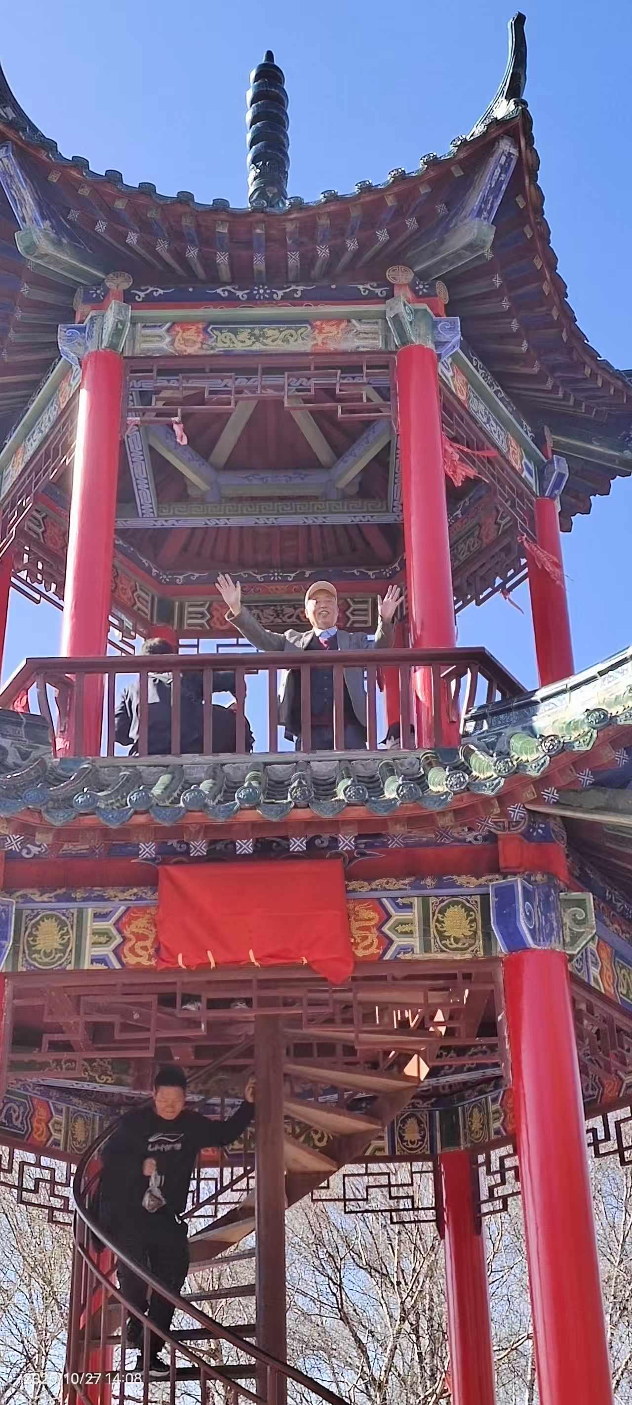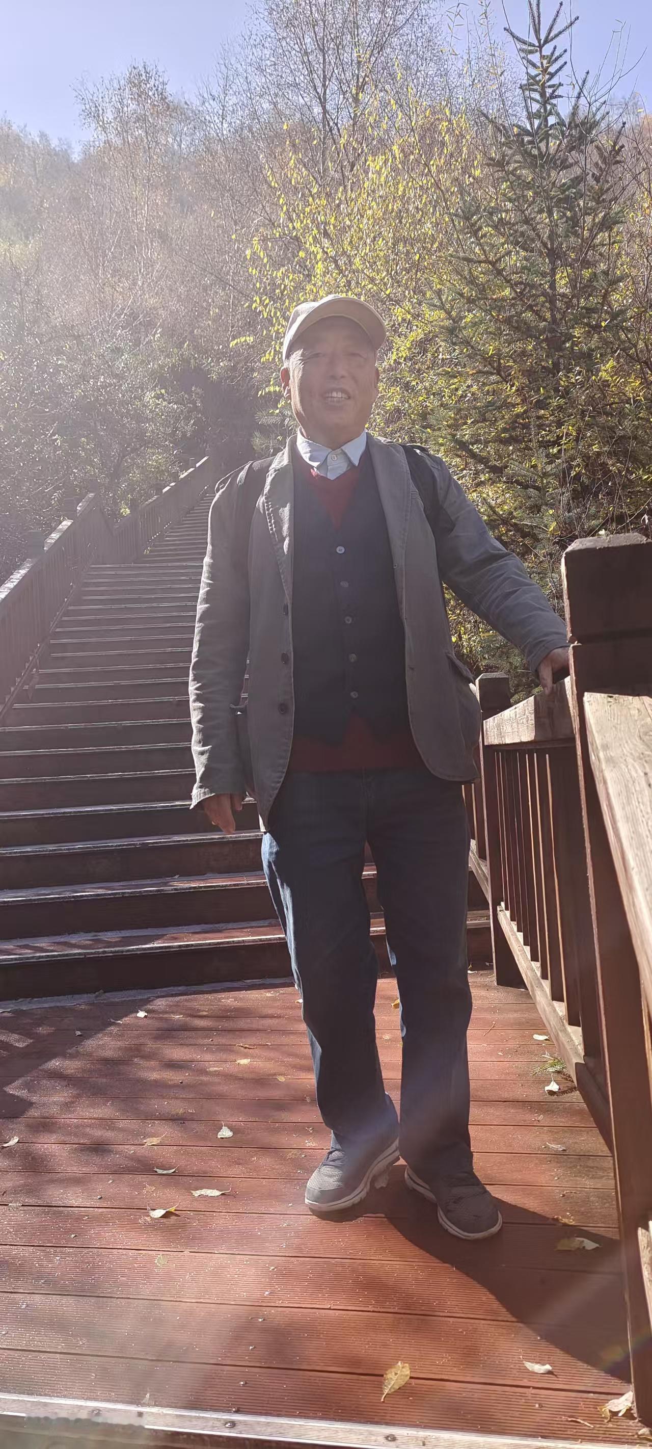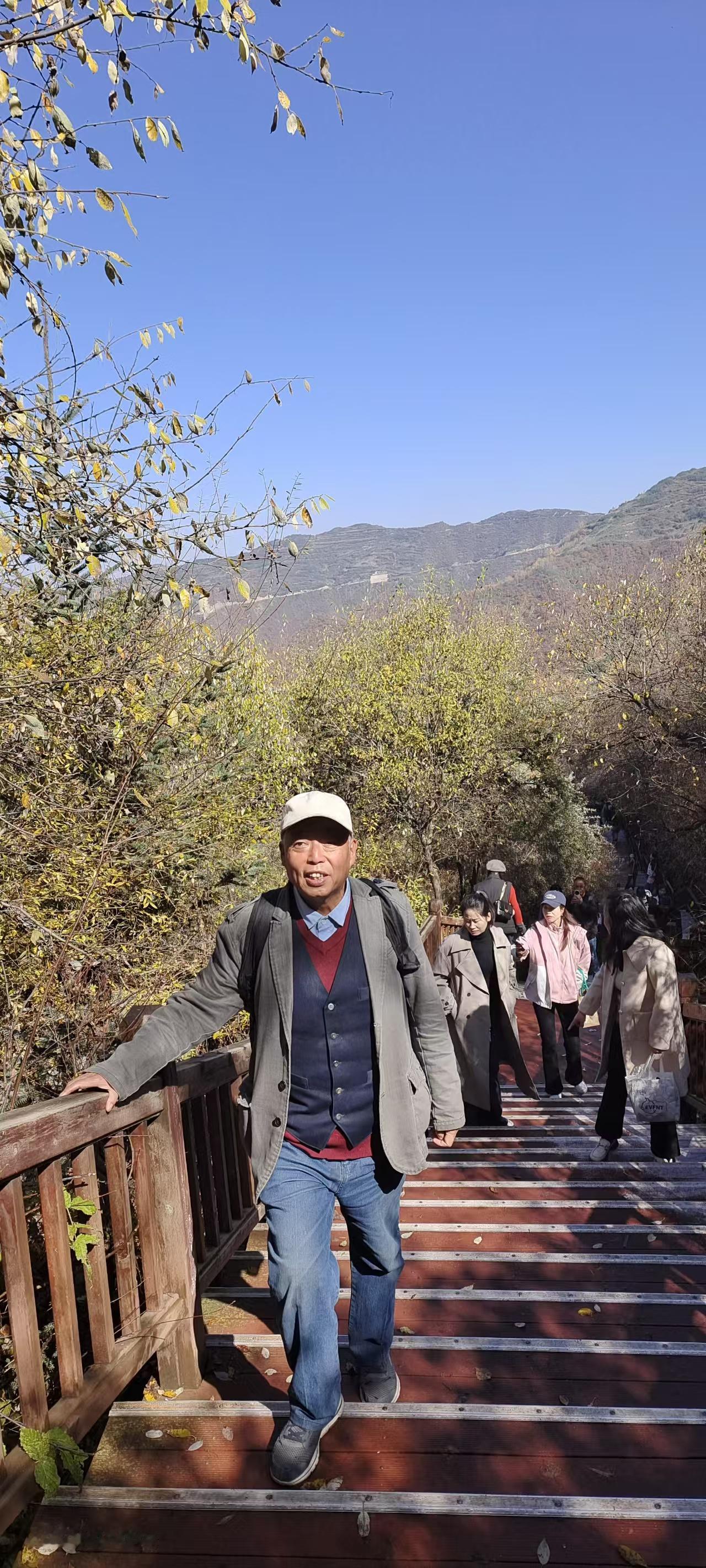秋日暖阳映景区 云顶山上秋色浓 记者王志俭(穿石)文图 前些天兰州阴雨连绵,天气有些阴冷只好猫在家中。这几日天气晴朗正是欣赏秋景的好时光,于是27日上午我披着秋日暖阳,踏上了游览云顶山景区的旅途。 1:慕名游览云顶山秋景 说来有些孤陋寡闻,几十年间我竟没去过云顶山。前些年云顶山鲁冰花盛开,曾让云顶山红火过一阵。那次就想去云顶山一游可惜没有去成,一晃几年又过去了。而这几年云顶山的名气越来越大,尤以秋色美丽享誉旅游业,并逐渐成为徒步旅游者青睐的景区。在此情形下如再不去云顶山,恐怕我这个兰州人就图有虚名了。 早晨9时许太阳公公已经上岗,将金色的阳光洒满城市角落。我从文化宫乘坐44路公交车,由于是第一次去云顶山路线不熟,询问公交车司机时他热情说,您只管安心乘车,到时我会提醒您下车换乘面包车。兰阿公路早已不是多年前的狭窄公路,公交车多半时间行驶在新修的宽阔公路上。我一边欣赏新修公路两侧的风光,一边回想着记忆中的兰阿公路旧貌恍如梦中,不由从内心感叹兰州城市建设真是飞跃发展。 “到了,在这里下车可乘面包车去云顶山。”就在我还遐想时耳边传来公交司机师傅的提醒声。刚到一个红灯十字,就听到面包车司机招呼:“每人10元钱,一直拉到云顶山步行道下。”没有耽误一分钟,我便和其他5个散客一同乘坐面包车驶向云顶山。 云顶山秋色醉煞人 面包车师傅很健谈,一路上不停的介绍云顶山的景点和浓郁的秋色,约半小时面包车行驶到云顶山下。 放眼四望群山郁郁葱葱,红色、黄色,褐色点缀绿色树木之中,彼时云顶上就像画家手中的调色盘,五彩斑斓绚丽多彩、美不胜收。虽然当天不是周末可一路上游人不断,有朝气蓬勃的年轻人,也有中老年人游客。甚至还能听到东北、山东、河南等地口音,从中可窥到云顶山火爆的一斑。 步行道走到一半,眼前出现木制梯形道一直通到山顶。路途比较远但每隔一段路,木制步道就有一个小方台,配备可供游客休息的木凳,只可惜前一天山上下过雨雪,凳子湿漉漉的无法入坐。 游人只好站在方台上小息,喝水、吃零食补充能量。在半山一个方台围栏边,有块黑布遮住下面上写别掀两个字。而这两个字却勾起了游客的好奇心,几乎每个到这里的游客都要掀开黑布一探究竟。“你真犟”看到“谜底”后游客们无不欢心大笑,笑声中冲淡了人们爬山时的枯燥和劳累。 木制踏板上湿漉漉的,有些踏板上还有一层薄薄的霜,踩在上面还有些湿滑。经过一段爬行脸上出现汗渍,再加上秋日暖阳辐射,身体感到有些发热。就在此时爬到了佛手景点,看到金黄色的佛手我顿时来了精神,站到佛手边拍照留念。除了这个金黄色的佛手,这个景点一面墙上还雕刻着几个高低不同的佛手,吸引着游客们打卡争相拍照。 之后,我又随着游客向上攀登,不一会又来到一个佛脚、佛手景点。这里围聚了不少游客,都纷纷在拍照和录制视频。观赏完佛手、佛脚景点后,许多年轻游客又向山上攀登,上面有玻璃栈道我胆小害怕就再没往上攀登。听说前面山顶有个亭子,是观赏云顶山风景的最佳位置,于是我便向山顶攀登而去。 接近山顶时发现林中有零星雪片,由此判定这里前几天降过雪,而路上搞卫生的工作人员证实了这一点。13时许,正是阳光最强时段,照在身上暖意融融。脚下踏板上的霜也完全融化,踩在上面发出滋滋响声,就连扶手也晒得有些发热,手握扶手一股暖意传向全身。 至此环境让人心情愉悦,尽管山顶步道陡峭,可感觉没费啥力就登到山顶。站在山顶亭子上面,云顶山景色一览无余。只见层峦叠嶂树木花草各展芳姿尽相媲美,让人感觉仿佛走进了仙界,令人陶醉不能自拔。我感觉此时美丽词语已无法形容云顶山的秋色之美。感觉唯有歌声能表达我的心情,可惜我没有唱歌的天赋。忽而我又觉得写诗可以抒发我对云顶山秋景的赞美,但遗憾的是我没有写诗的才华。 于是只能对着云顶山默默说到,既然我不会唱歌和作诗,那就让我写篇拙文抒发我的感情吧。我知道拙文肯定写不出云顶山的雄伟壮丽,但我还是要自不量力的去写,因为文章能让更多人知道兰州云顶山的大名,如此我就心满意足了!