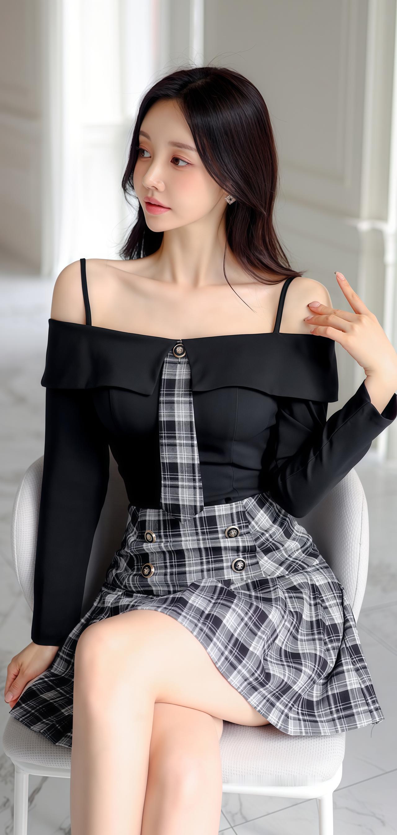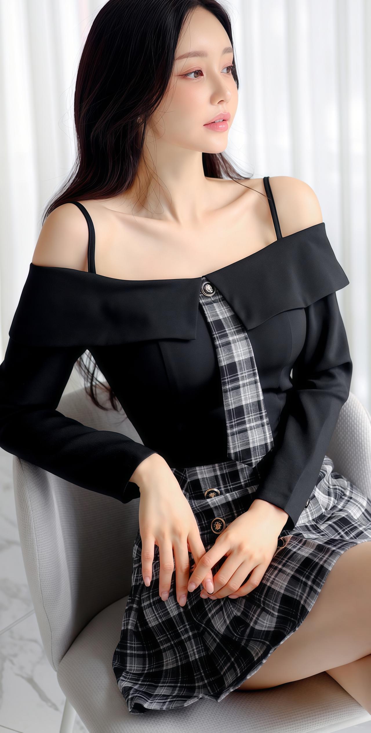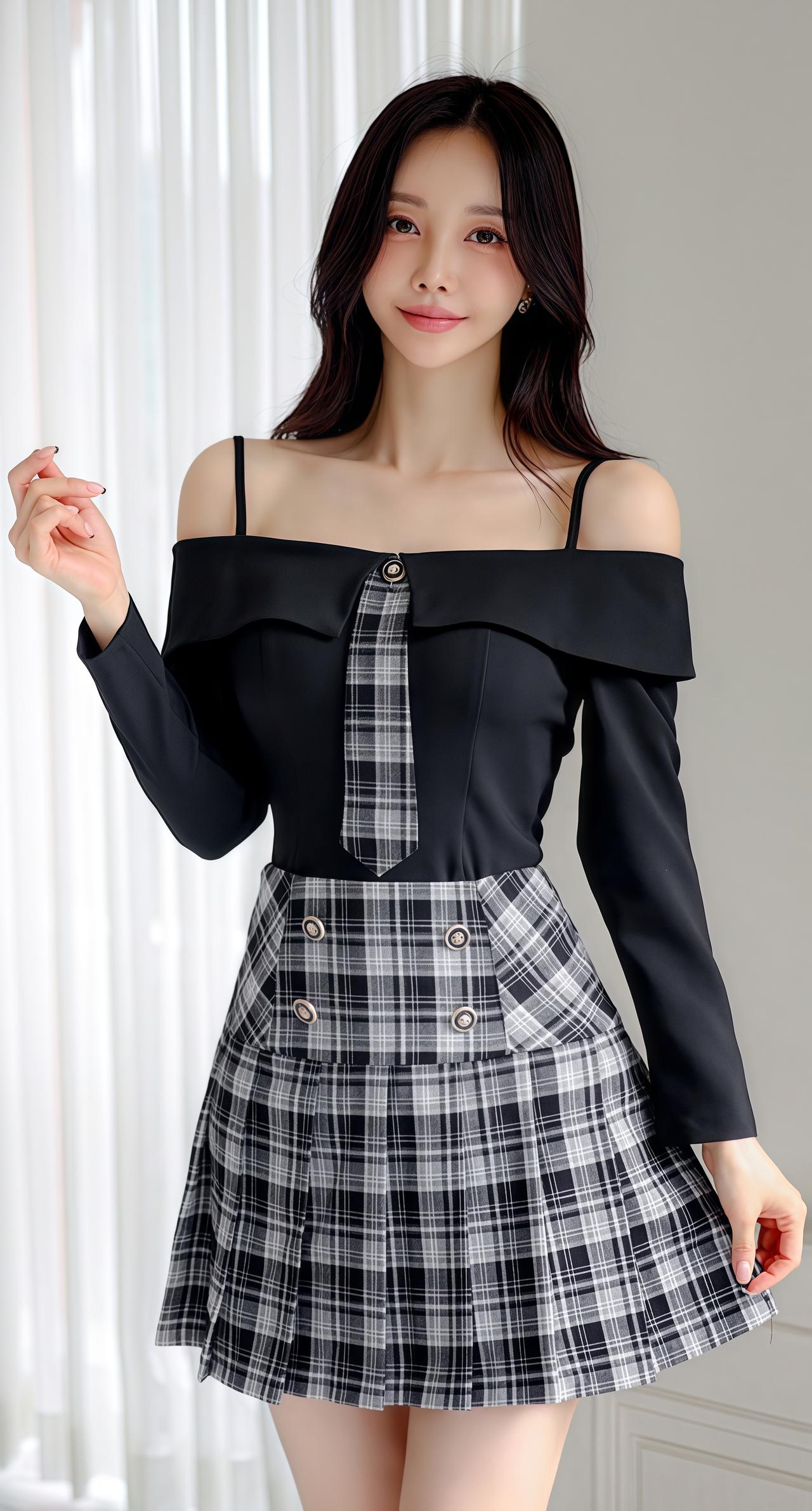孙允珠黑色连衣裙,搭配高跟鞋。