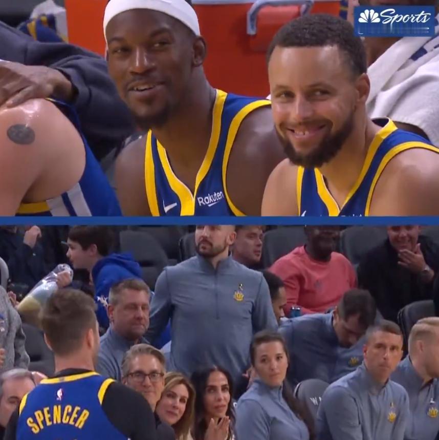 斯潘塞哥哥打弟弟,金州勇士主场131:118轻取灰熊! 垃圾时间上演温情一幕兄弟单打,库里和教练组两队球员一起起哄!这才是真正的兄弟篮球🏀呀! 灰熊的斯潘塞是弟弟上场14分钟得了11分2个篮板3个助攻!勇士斯潘塞是哥哥出场2分钟一分没得!哥哥就是打酱油的呀!