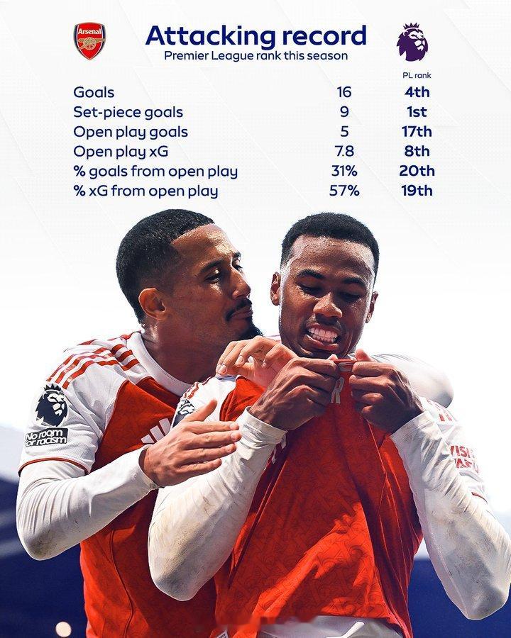 理查兹表示:人们称阿森纳为“定位球FC”,但这没关系,无论你需要用什么方式赢得比赛,赢球才是最重要的(阿森纳本赛季进球方式分布) 金秋观赛季 阿森纳著名教授