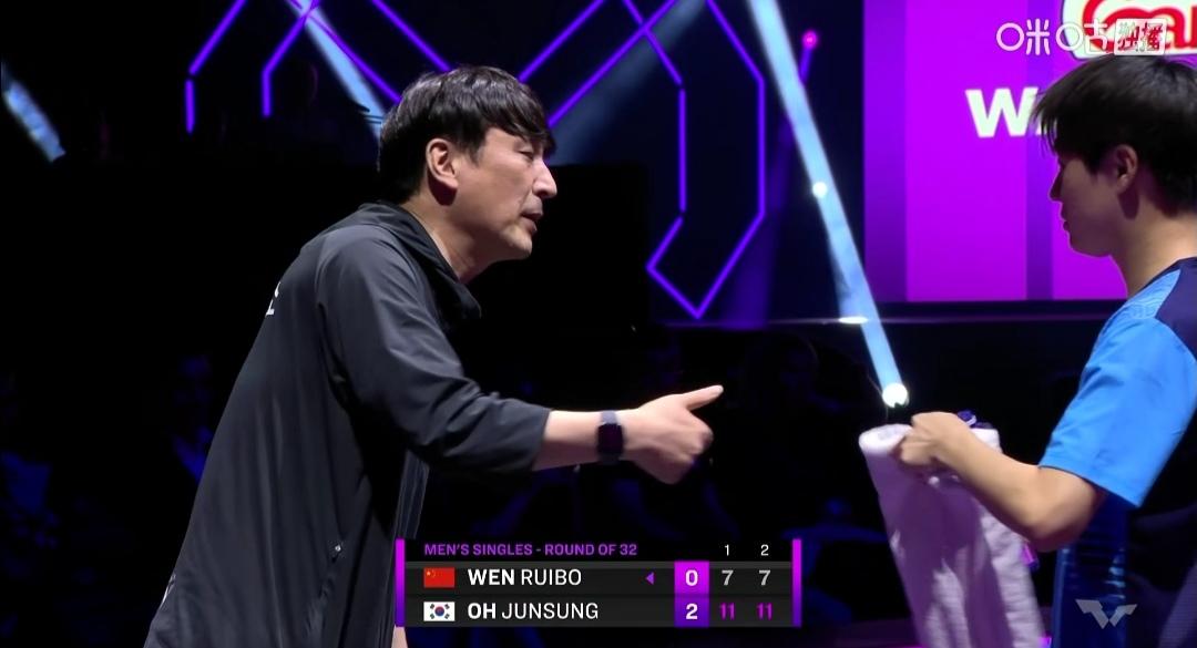 第二场,国乒小将温瑞博也输了! 蒙彼利埃冠军赛,首日第二场比赛是男单1/16决赛,一场中韩选手的青春对话。 2007出生的国乒温瑞博(第36)替补参赛,对阵2006出生的韩国“太子”吴睃成(第22)。 温瑞博1:3(7-11;7-11;11-8;8-11)不敌吴睃成。 国乒开局极为不利! 第一场女选手失利, 第二场男选手又失利了! 中国乒乓球队继续加油!