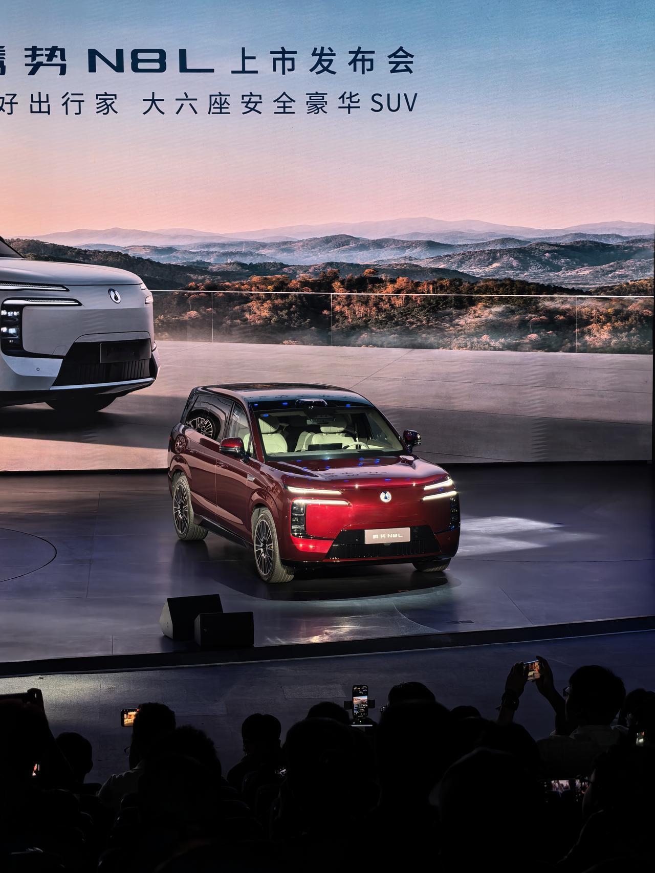 腾势N8L,正式发布了,售价29.98万起,我觉得价格非常有诚意,大六座SUV又一款卷王! 今晚现场看完发布会,聊聊我的感受。 尺寸上应该是目前同级8系最大的,长5.2米,轴距3.07米。之前体验过,三排坐成年人没问题。 车头高头大马,纯平车门,隐藏水切,外形上就是小一寸的N9,我觉得还挺好看,很有气势。 颜色上也比较丰富,有双拼有单色,个人最喜欢红色,太养眼了! 冰箱彩电大沙发,一一俱全,副驾零重力座椅,冰箱双层三开门,17.3英寸后排娱乐屏。 我印象比较深刻的是它座椅左右主动支撑的满满的安全感! 易三方,也少不了,蟹形模式,易三方泊车在某些场景真的好用。比亚迪说,不是所有三电机都是易三方,没毛病。 后轮支持正负10度转向,4.58米的转弯半径,应该是所有大型SUV最小的,比宝马mini还小,这个对大车真的实用。 3.9秒零百加速,2.0T,标配磷酸铁锂电池,230KM续航,云辇A,双枪空气悬挂,天神之眼B激光雷达,帝瓦雷音响, 20扬声器,400瓦功率,硬件配置也很顶! 印象比较深刻的还有高速避让,高速爆胎,高速甩尾,暴风侧吹,AEB等安全测评,各项指数都不错,比如,近几年最受大家关注的AEB 147km/h刹停,不愧是传统大厂,安全这块确实更有优势。 腾势算是中国新能源车首个豪华品牌,D9之后,一直没有一款稳定的爆款产品,特别是在大6座领域,感觉这次N8L吸取了N9的经验和教训,它应该就是比亚迪大六座的杀手锏,毕竟产品力和价格摆在这里!