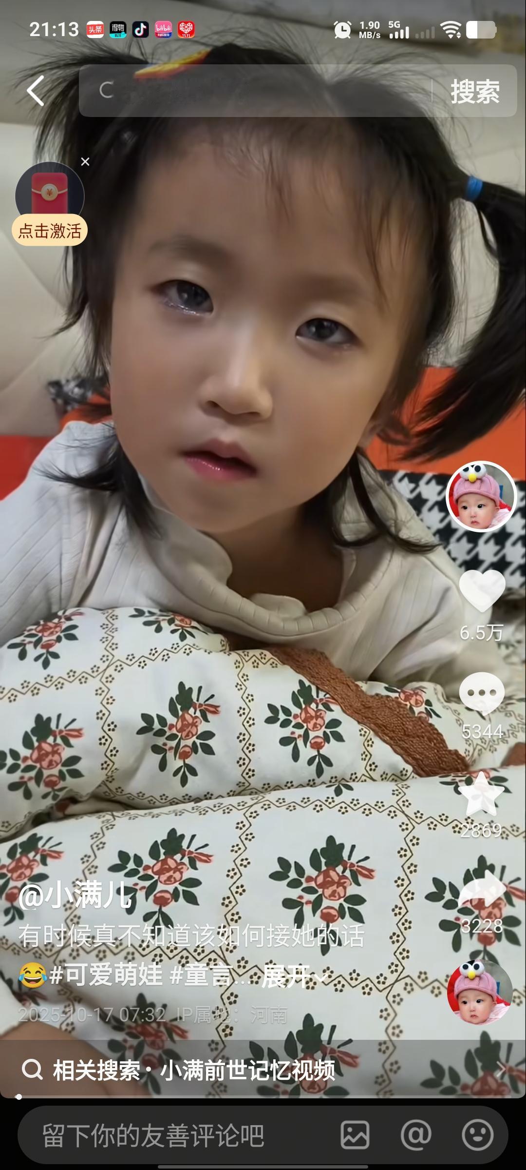 河南濮阳4岁神童小满儿:是转世奇才还是天赋异禀? 近日,河南濮阳一名4岁女孩小满儿因“超龄智慧”引发全网热议。这个看似普通的孩子,却展现出远超同龄人的认知能力——她能精准阐述《道德经》中的哲学思想,对中医“望闻问切”的原理侃侃而谈,甚至能结合历史典故分析现代社会现象。其母透露,小满儿1岁半时便开始用成语表达需求,2岁时已能背诵《千字文》,如今更常说出令学者惊叹的“金句”,例如用“水满则溢,月盈则亏”解释人生哲理,令网友直呼“这孩子怕不是带着前世记忆来的”。 小满儿的“神通”现象迅速引发两极讨论。支持者认为,她对古籍经典的熟稔程度远超儿童认知范畴,例如曾准确指出《黄帝内经》中“春夏养阳,秋冬养阴”的养生逻辑,甚至能结合现代气候变化提出改良建议,这种“跨时代”的知识储备难以用常规教育解释。更有股民在评论区戏称“求小满儿荐股”,认为其洞察力堪比投资大师。 然而,专家对此保持谨慎态度。儿童心理学家指出,4岁儿童的语言爆发期可能伴随对环境信息的快速吸收,但小满儿展现的“系统性思维”仍需科学验证。例如,她能将《易经》的阴阳理论与自然现象关联,这种抽象思维能力虽罕见,但也可能源于家庭早期启蒙的深度渗透。 无论真相如何,小满儿已成为大众探索“天赋与成长”的窗口。她的故事既反映了人们对“神童”现象的好奇,也折射出社会对教育本质的思考——是转世奇才的偶然,还是科学培育的必然?或许正如网友所言:“与其纠结前世今生,不如静待这株幼苗如何长成参天大树。”神童小满 小满儿语录 小满儿成长日记 小满成长奇遇记