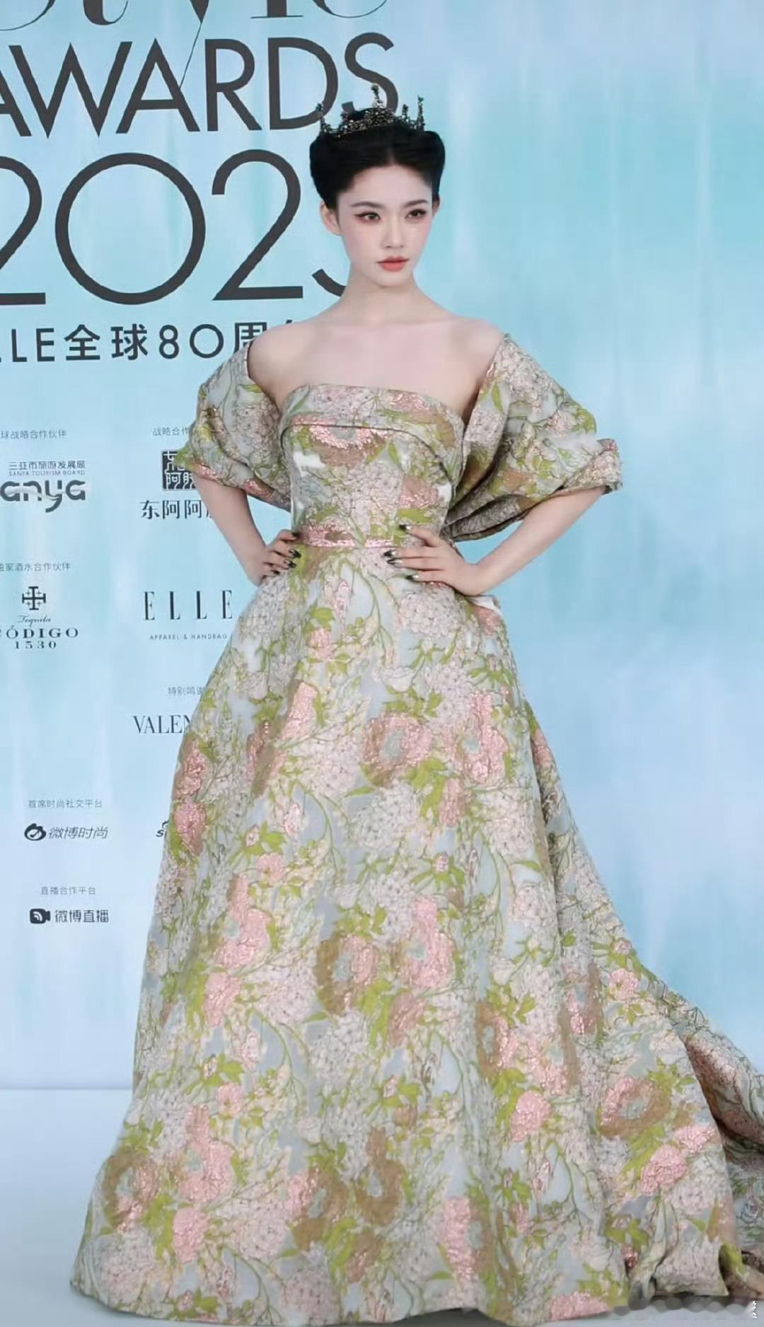 林允公主皇冠林允ELLE红毯造型绝了!公主裙搭皇冠尽显优雅,脸上珍珠点缀像人