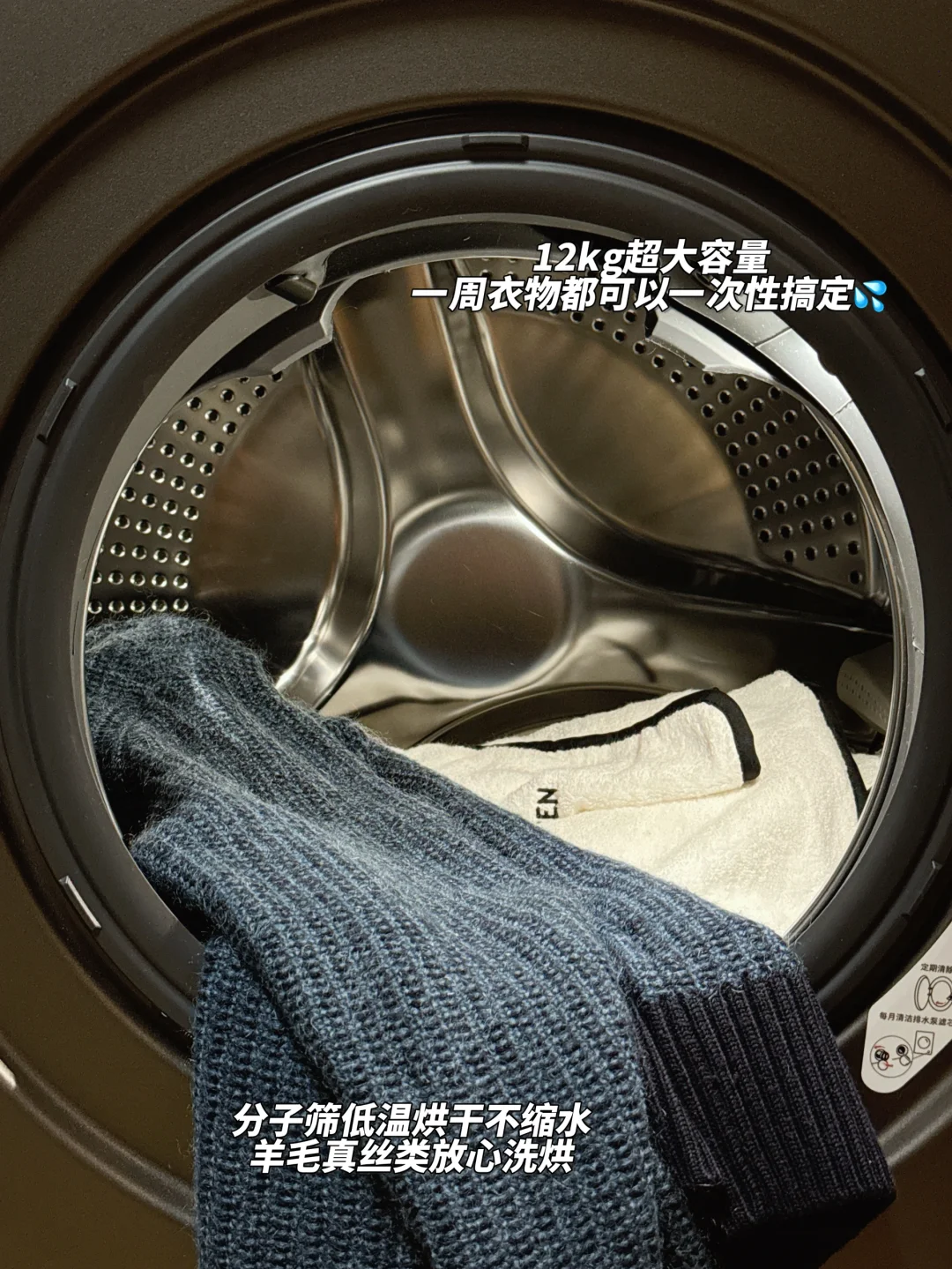 💦4个NBC温度传感器+RR算法控温精准,烘干完全不缩水,还软乎乎的跟新的一样,国际羊毛局双绿标双认证,娇贵的真丝,羊毛衣服都可以放心洗烘,还会自动收集毛絮自动清理,无需手动清理,洗烘一步到位,真的太贴心
