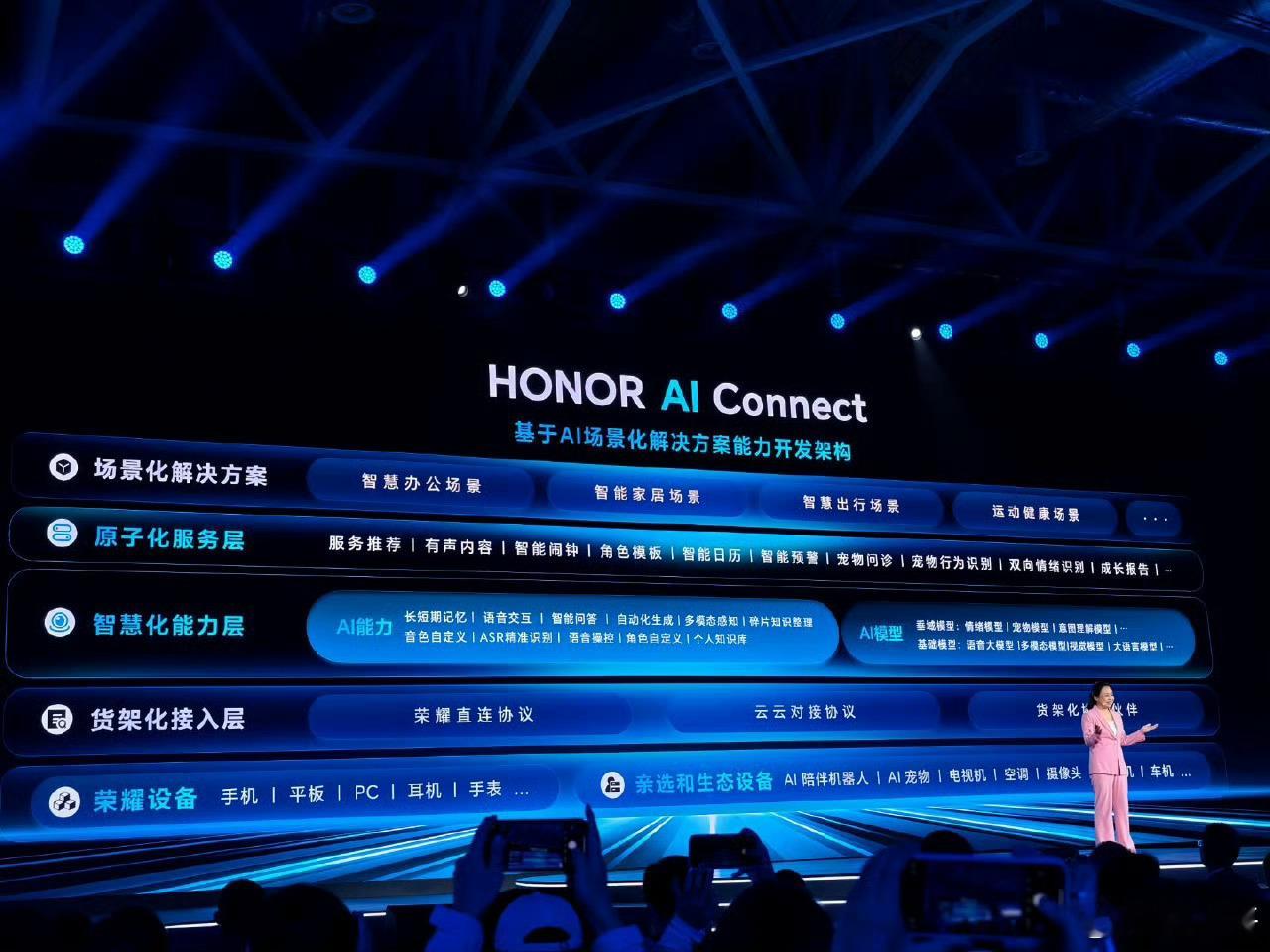 荣耀在10月23日全球开发者大会上正式发布MagicOS 10系统,聚焦点依然是AI,可以说是今年目的最明确的一家。HONOR Connect平台升级为HONOR AI Connect,从“互联”迈向“智联”,向生态伙伴开放AI能力,推出覆盖智慧家居、车联、办公等场景的八大解决方案,通过"1×3×N"生态战略携手合作伙伴构建开放生态。 MagicOS10荣耀全球开发者大会2025