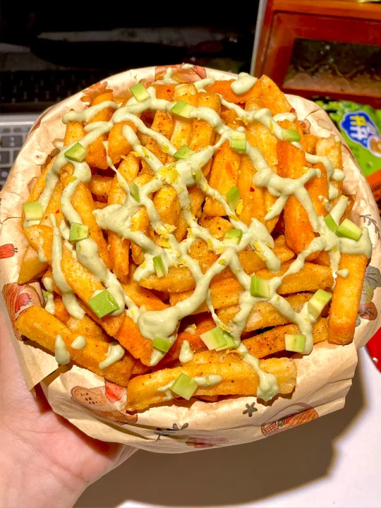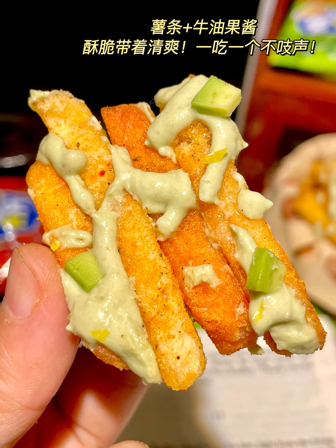 牛油果🥑酱裹着咸香酥脆的薯条,一整个清爽甜辣咸香!!