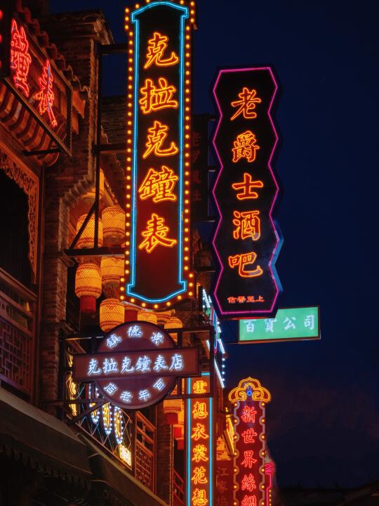 ✅中山北路步行街:民国时代同款老街,整条街都是保留了原来的建筑,夜晚霓虹灯招牌亮起,很有氛围!来的时候刚好遇到了景区内中山北路步行街的开街仪式,有龙灯巡游、鱼灯、蚌壳舞、傩面舞等表演,很热闹