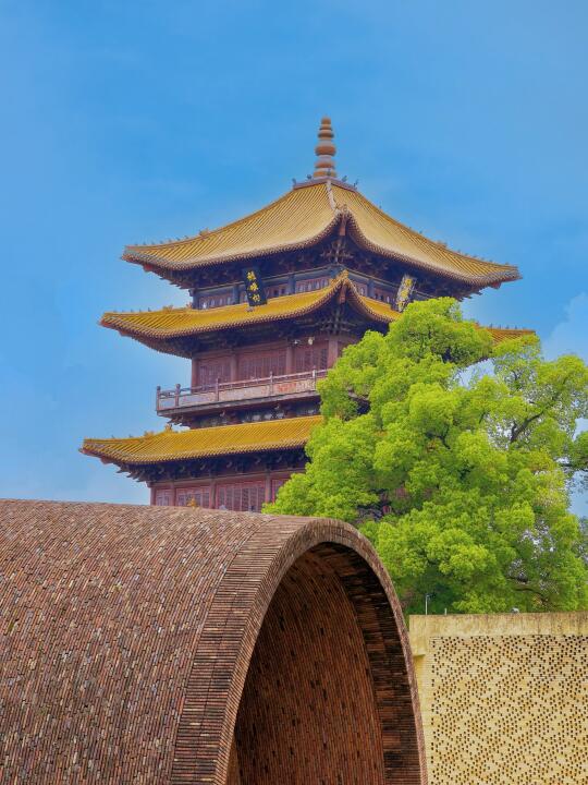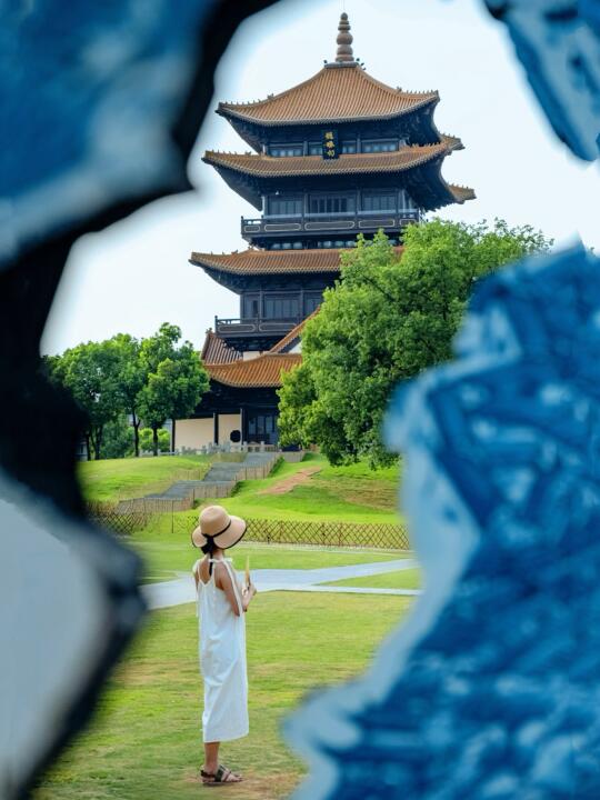 ✅龙珠阁:透过陶瓷框拍摄龙珠阁,可以登楼俯瞰108条老里弄