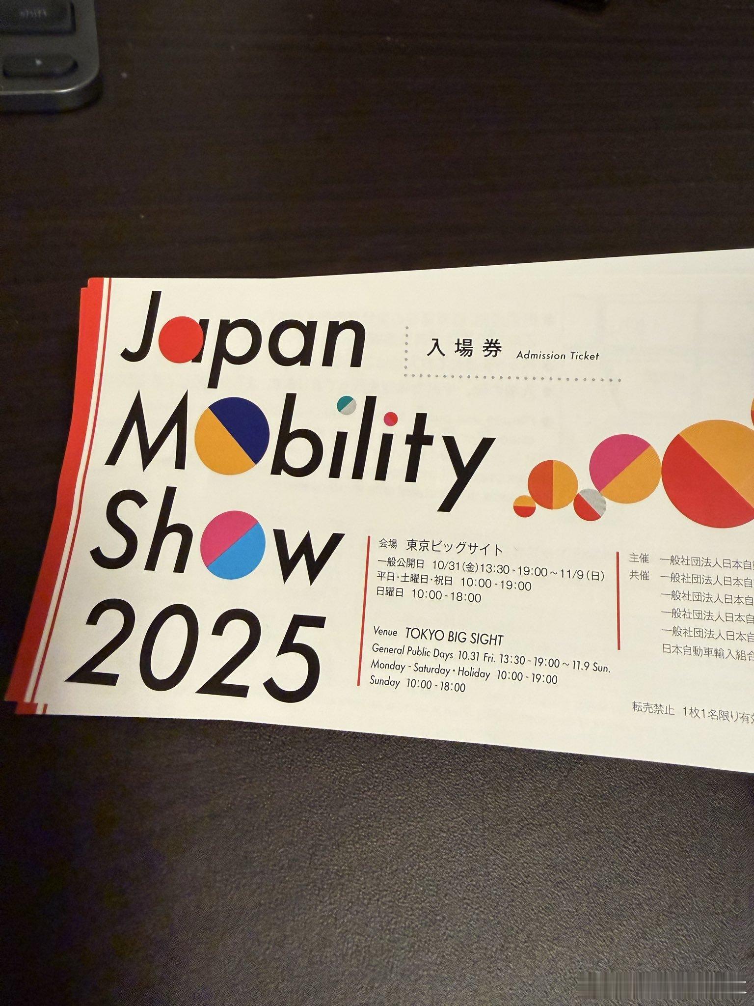 东京车展的入场券,还有不同的颜色对观众进行区分,一会看看媒体证会不会也有区别,比如日本媒体和海外媒体。东京车展