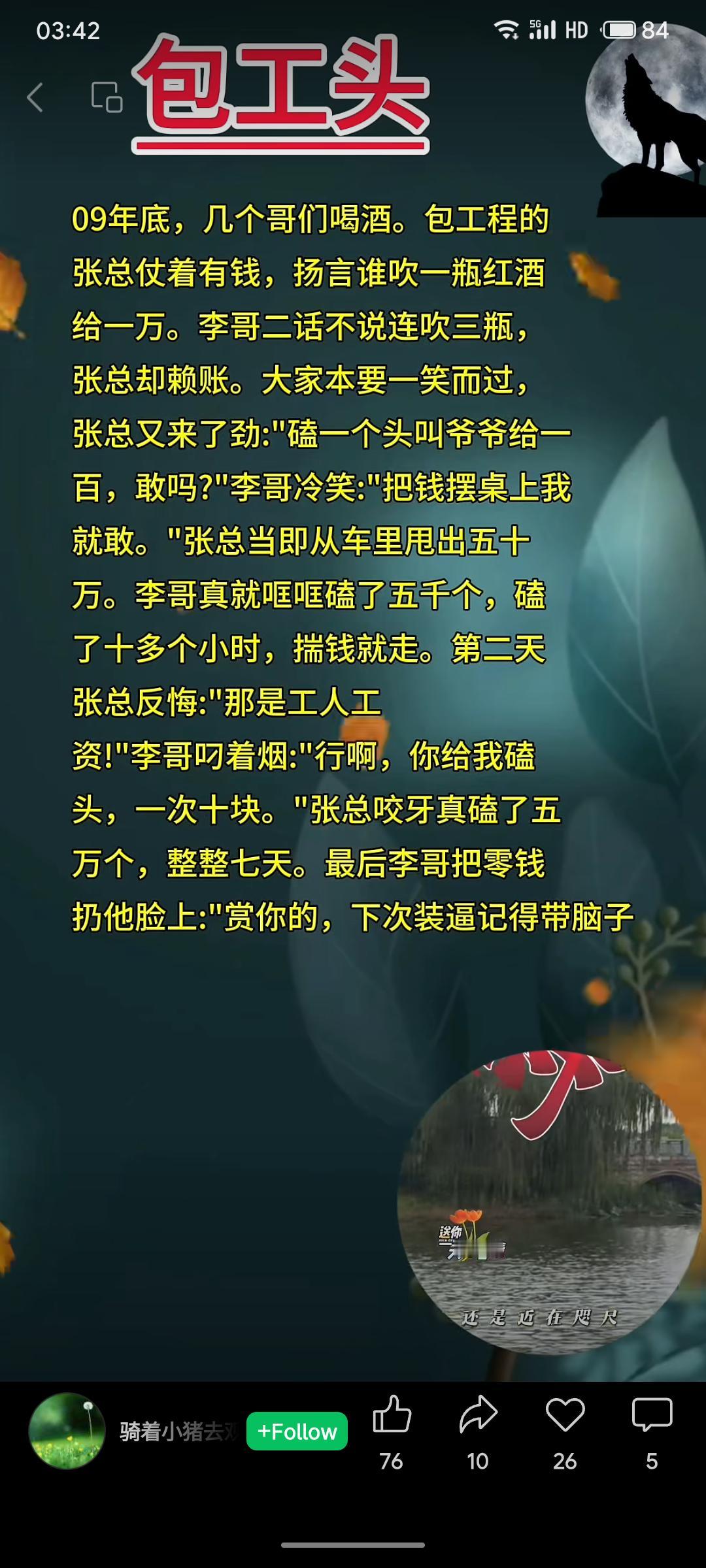 包工头张总酒桌炫富,以万元一瓶悬赏吹红酒。李哥连吹三瓶后张总赖账,又挑衅磕头一个给一百。李哥当真磕五千个头拿走五十万。次日张总反悔索款,李哥反要求其磕头一次十元,张总磕五万个后受辱。