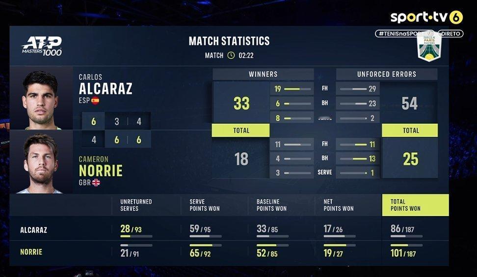 0-2不敌诺里,阿卡一轮游!当辛纳还在维也纳浴血奋战,鸭嘴就早早提前跑来巴黎试场地,也不知道试了个什么。 自今年迈阿密大师赛之后首次遭遇一轮游,连续9项赛事打进决赛的辉煌纪录戛然而止。 本以为阿卡的稳定性在2025赛季脱胎换骨,但巴黎大师赛一轮游显示他在室内赛季的老大难问题似乎仍未得到解决。 一旦辛纳在巴黎夺冠,不仅将短暂夺回一周世界第一,还将把冠军积分榜上的差距追近到1050分。
