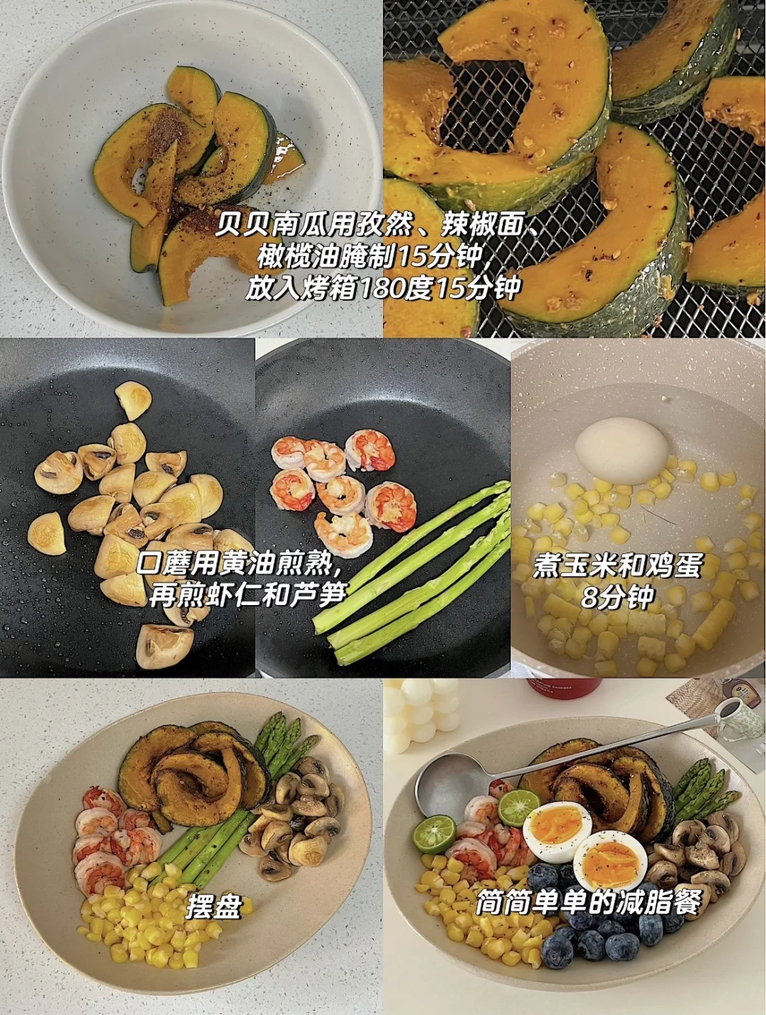 普通人的减脂餐-牛排南瓜虾仁蓝莓沙拉🥗