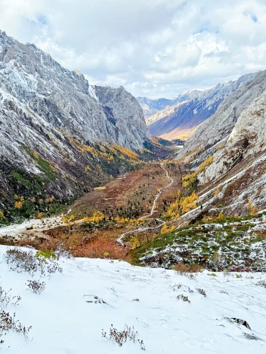 📍红星岩海 🚄去程:成都东8:12—九寨黄龙10:01 返程:松潘19:56—成都东21:31 要提前联系当地司机包车,直接高铁站接送到栈道徒步入口,中间有个卡点,私家车开不进去,只有当地车才能进去,一定要给司机说送到栈道徒步入口! 徒步线路往返线七公里左右,前半部分都是木栈道很好走,翻垭口的时候有一点点难度,总体来说线路还是比较轻松的,徒步➕拍照➕休息时间一共4小时左右,下山比较早还可以去松潘古城逛逛,牦牛肉串一元一串一定要试一试!如果想去九寨沟的朋友晚上可以直接住松潘,买第二天晚上的高铁回成都,一样很方便! 🎒🎒关于装备:防水防滑登山鞋、冲锋衣裤、抓绒衣裤、羽绒内胆、速干打底衣裤、保暖帽、防水手套、登山杖、雨衣、充电宝、水、牛肉干、干果、肉脯、士力架(路上没有任何补给点) 最近刚好是彩林季(图片均是10.25日实拍),想去的朋友抓紧时间不要错过!!