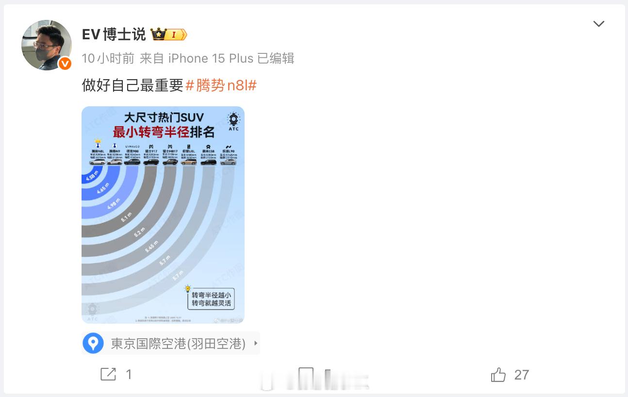 另外,转向半径影响的主要是掉头和窄路转弯的灵活性,但它不是评价驾驶灵活性的唯一指标。底盘开起来怎么样,车子的整体尺寸怎么(特别是宽度)的影响比较大。腾势N9L乐道L90 ​​​