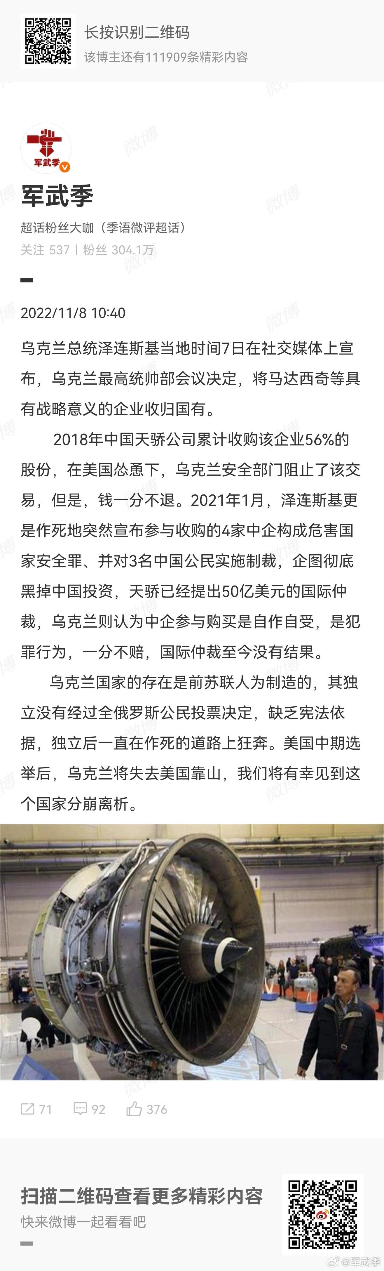 2022年乌克兰泽连斯基在美国挑唆下分币不花抢劫了购买动力沙皇的中国天骄公司。