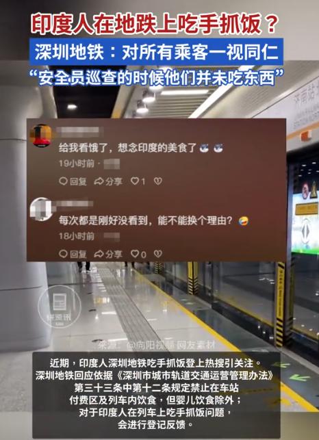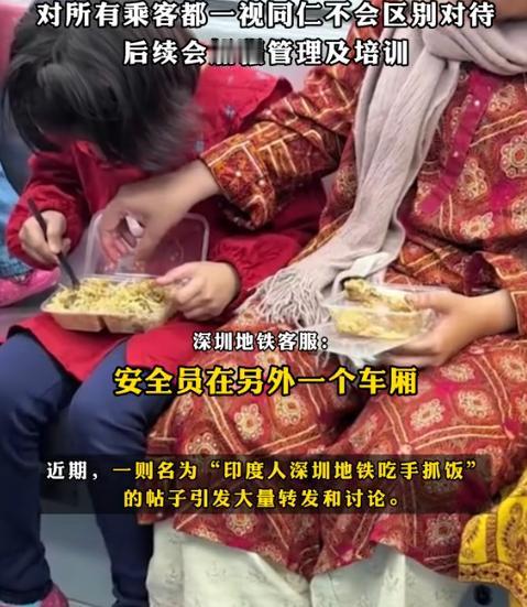 “防不胜防!”近日,广东深圳,两位印度人在地铁上趁着巡查员不在时,竟掏出了两份手抓饭,然后在地铁上大快朵颐起来,旁边一位乘客看不下去,将这一幕拍了下来,网友们顿时吵翻!     早高峰,地铁车厢里人挤人。     有乘客发现,对面坐着两位印度乘客,趁地铁安全员巡查到别的车厢的时候,从袋子里掏出两份手抓饭,直接用手抓着吃起来。     咖喱味一下子在车厢里散开,浓得挺冲。     米饭粒和酱汁还掉在座位缝里,地上也有几粒。     旁边的人皱着眉,有人嫌味大,有人看得尴尬。     一位大哥实在看不下去,掏出手机拍了视频。     视频传上网,评论区立马炸锅。     网友吵成两拨:一边说,“人家印度人本来就习惯用手吃饭,这在他们那儿很正常,说不定真不知道地铁不能吃东西。提醒一下就行,别上纲上线。”     还有人补充,“他们吃饭前都会洗手,这不是不讲卫生,是文化差异。”     另一边火气就大了,“咱自己在地铁喝口水都可能被提醒,凭啥外国人吃饭就行?这不是双标吗?”     有深圳本地人吐槽说,早高峰车厢本来就闷,咖喱味一散开好几个站都散不去,掉的饭粒要清洁工半天才能擦干净。     还有人担心残渣容易引来老鼠,甚至有人建议地铁得加派人手巡查。     这事发酵太快,深圳地铁很快回应:根据《深圳市城市轨道交通运营管理办法》,地铁里禁止饮食,除了婴儿饮食外,对所有乘客一视同仁。     至于当时为什么没人管,是因为安全员刚好在巡查别的车厢,没注意到。     这解释一出,网友的讨论又多了层意思。     有人觉得地铁处理算有分寸,没必要小题大做,也有人认为该罚还是得罚,不然规矩就变成摆设。     其实仔细想,这事真挺微妙。     手抓饭在印度就是日常,就像我们用筷子一样自然,人家可能真没意识到地铁不能吃饭。     可地铁的禁食规定也不是针对谁,是为了车厢卫生和乘车体验。     食物掉地上容易滑、气味大容易让人不舒服,这在哪个城市都一样。     2022年,有个中国姑娘在深圳地铁吃汉堡,不小心掉了渣,马上跪地用纸巾擦干净,当时大家都夸她有素质。     这次争议大,可能是因为“手抓”的方式太显眼,再加上大家担心执法不一致。     如果他们在地铁站外的等候区吃,估计也没人说什么。     现在地铁方面也说了,会加强管理,不光培训安全员,还考虑在车站加多语种提示,比如印地语、英语,避免类似误会。     说白了,这事就是“规矩”碰上了“习惯”。     印度人吃手抓饭没什么奇怪的,他们从小就是这样长大的。     右手吃饭是礼节,左手不能碰食物,吃前还会认真洗手,讲究得很。     在他们看来,这种方式干净又自然。     可问题在于,地铁是公共场所,不是谁家饭桌。人多、空气闷、车厢又密闭,咖喱那股味一散开,别人想躲都躲不开。     掉点饭粒、溅点酱汁,清洁工收拾起来也麻烦。     所以说,不是大家不懂包容,而是公共空间有公共的规矩。     你可以有文化差异,但不能让别人因此受罪。     地铁里禁止吃东西,这不是针对哪一国人,而是为了大家坐得舒服点。     有网友说得挺到位:“包容不是要我们忍着咖喱味在车厢飘一整站,而是提前在显眼的地方写清楚规矩。”     比如进站口、候车区、列车门上,都可以贴上“禁止饮食”的提示,不光中文,还加上英语、印地语。     这样大家一看就明白,也不会出现这种尴尬事。     规矩得守,但提醒方式也可以更人性化。     多一点说明,少一点指责,很多矛盾就不会闹大。     毕竟在地铁这种地方,谁都想安静干净地坐一程,不被味道熏、不被眼前的饭勺手吓一跳。     对此你怎么看?     信源:观察者网