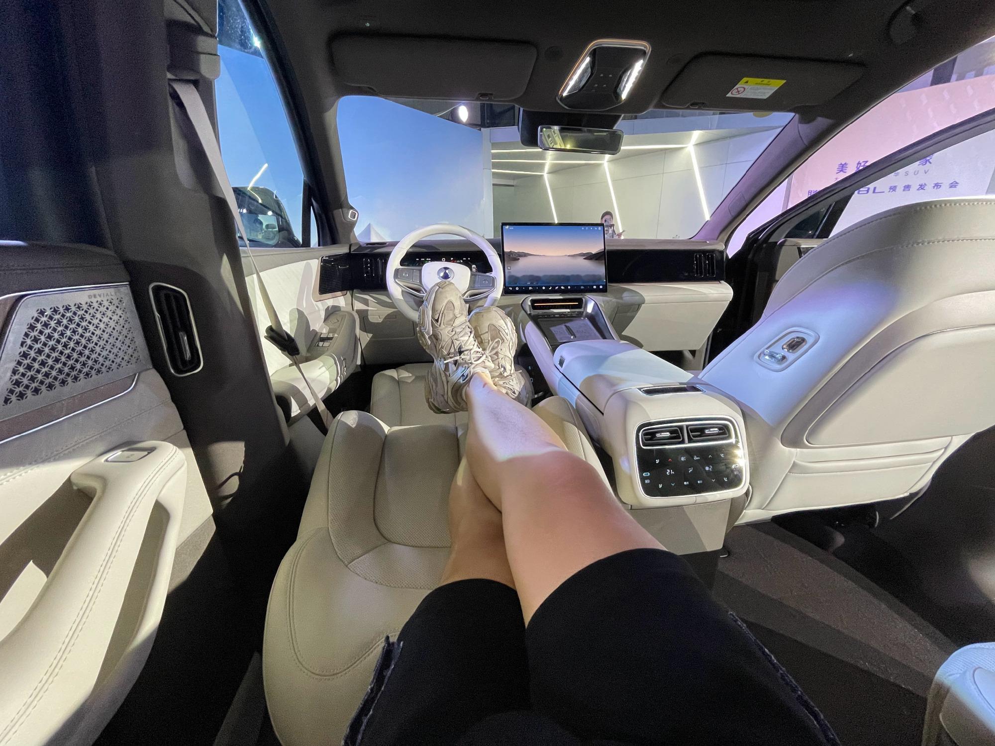 都知道扫腿打开后备箱,但是拿着重物抱着娃绝对不安全,N8L用Ar投影感知解决这个问题,脚踩在投影上就能打开后备箱,i人也不用语音控制尴尬了。真的很为家庭考虑,错位模式的1带2可以很方便的照顾两娃,手心手背都是肉。