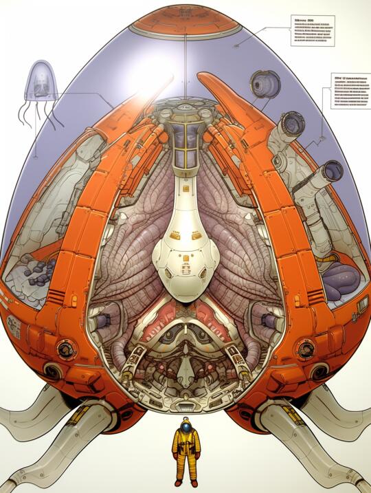 midjourney aigc 艺术创想 机械设计 科幻 生物技术 生物朋克 装置艺术 未来 太空城