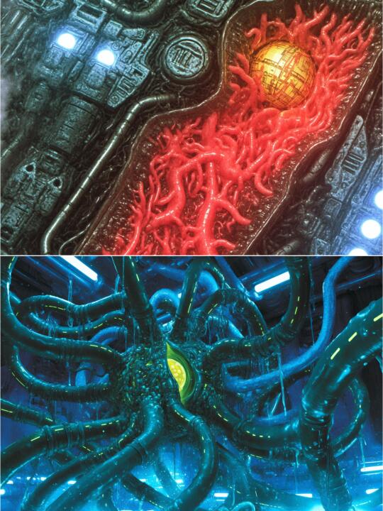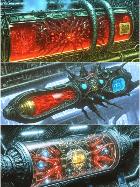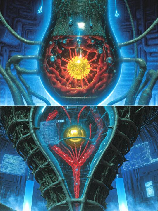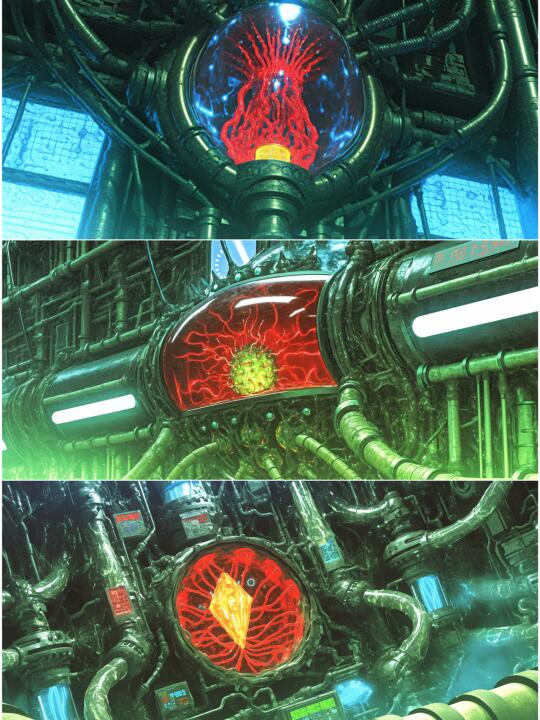 核心区域 ▪️ 生物机械共生系统 ▪️ 量子光合反应堆 ▪️ 基因编程工作站 设计理念 以生物智能为核心 突破传统机械朋克的局限 midjourney 艺术创想 机械设计 aigc 蔑视 生物朋克 装置艺术 科幻 概念设计 血肉朋克 打造可持续的未来科技生态