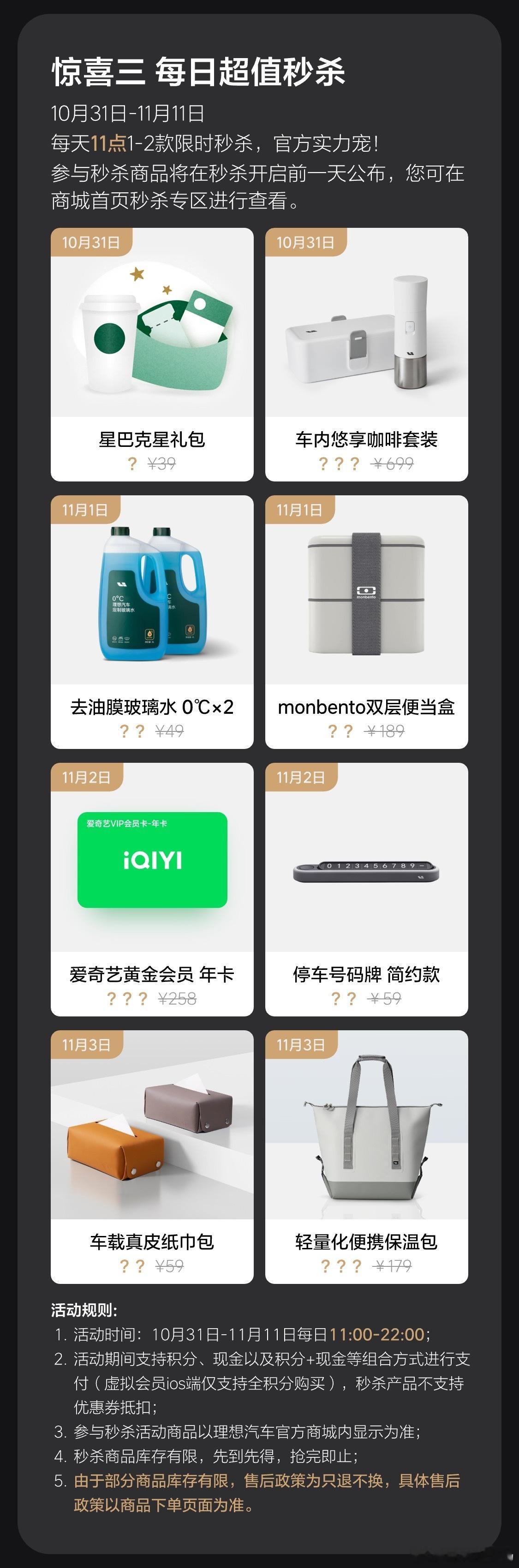 在秒杀活动这一项,强烈推荐大家玻璃水和星巴克券必买!