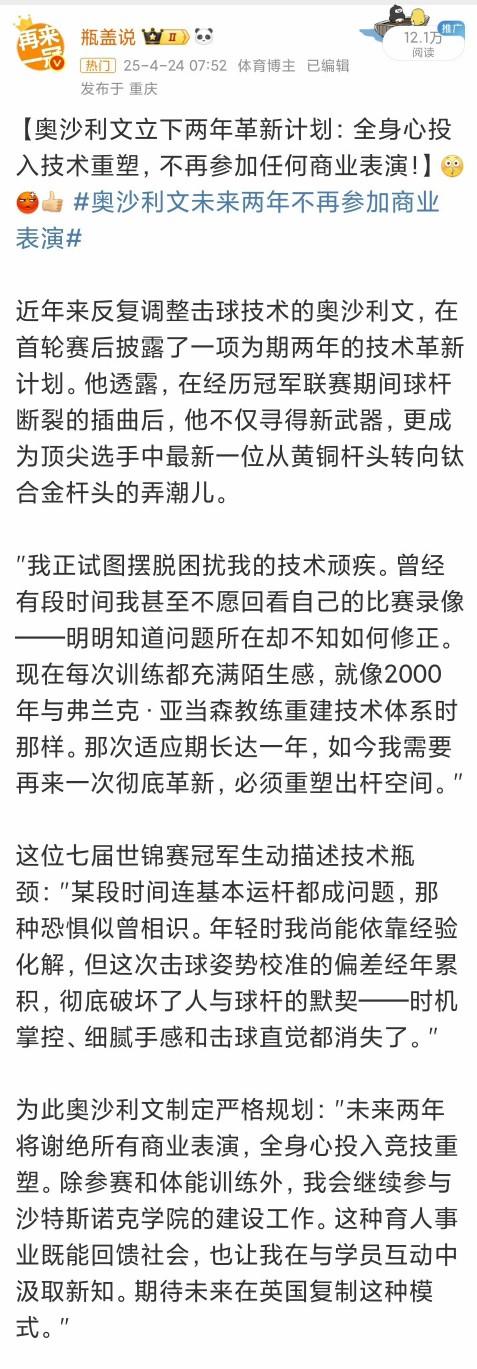 成年人童话,听听而已!奥沙利文:未来两年内谢绝所有表演赛……三年内谢绝所有表演赛…… 2025年7月,奥沙利文在宣传澳门表演赛时宣称“未来两年内谢绝所有表演赛”,10月再次以“三年内谢绝所有表演赛”为宣传点推广与赵心童的澳门表演赛。 他不仅未停止表演赛,反而在声明发布后连续宣布参加2025年7月25日和10月31日的澳门表演赛。